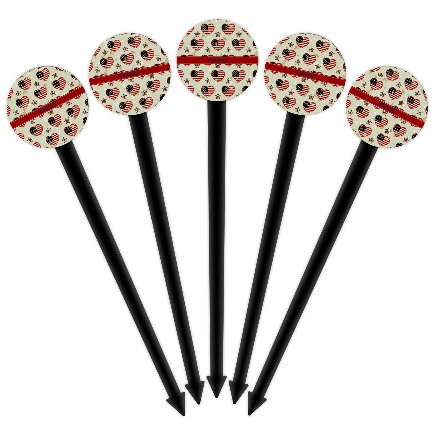 America / USA Designs for 6" Round Plastic Food Picks - Black - Double-Sided