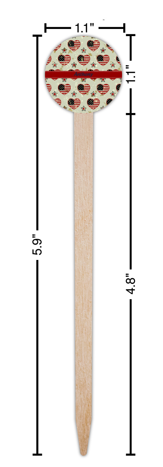 America / USA Designs for 6" Round Wooden Food Picks - Single-Sided