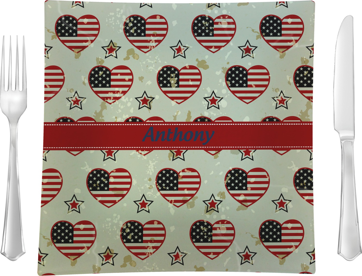 America / USA Designs for 9.5" Glass Square Lunch / Dinner Plates