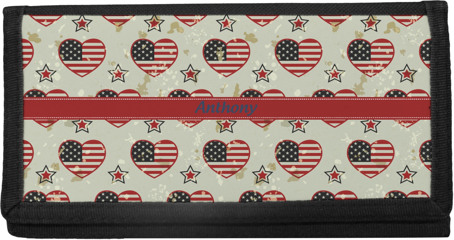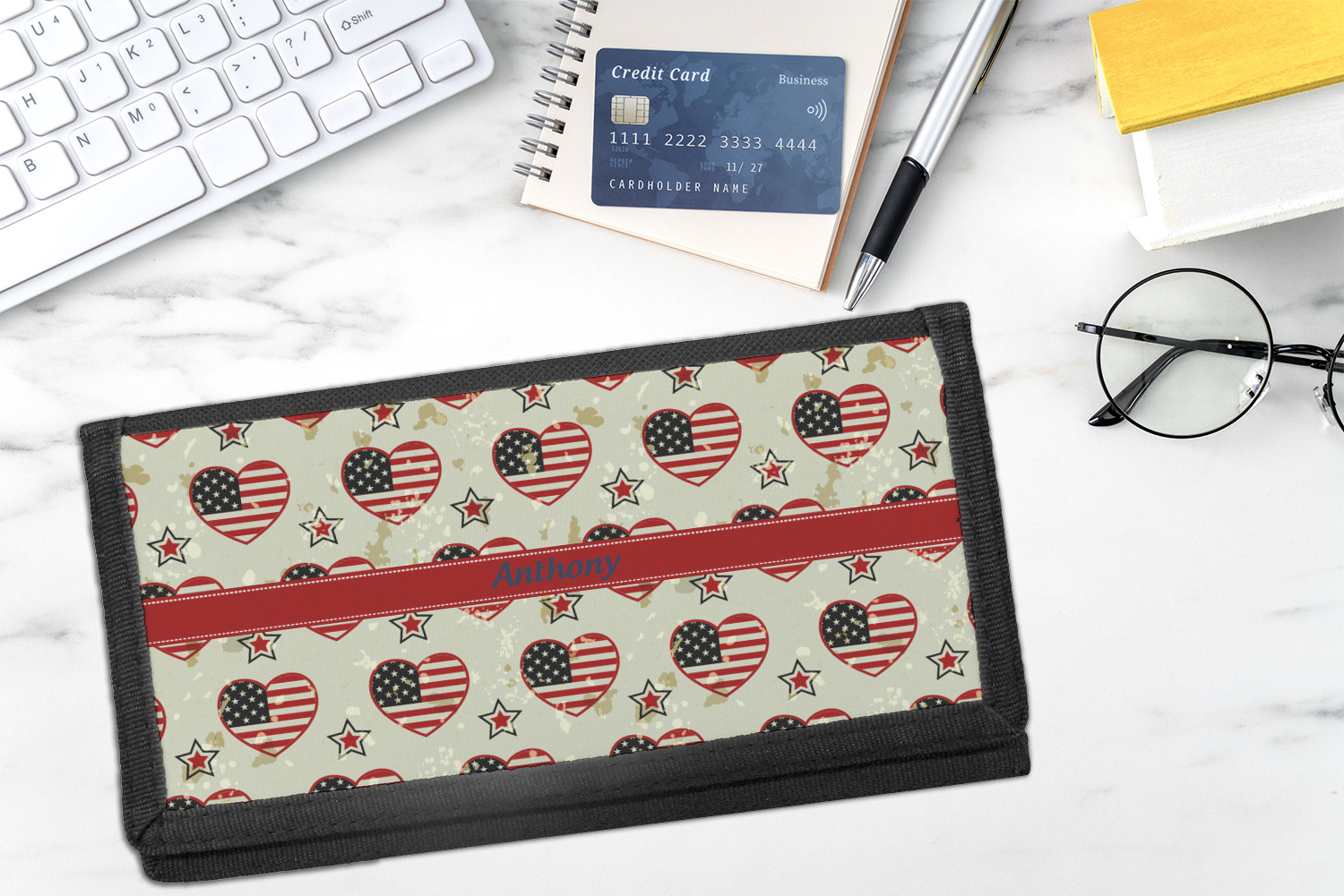 The checkbook cover is made of a durable canvas and the front flap is decorated with a vibrant design of your choosing. With 4 slots for credit cards or IDs, and 2 compartments for your checkbook register, cash, receipts, business cards, and more; this checkbook cover could easily double as a wallet.