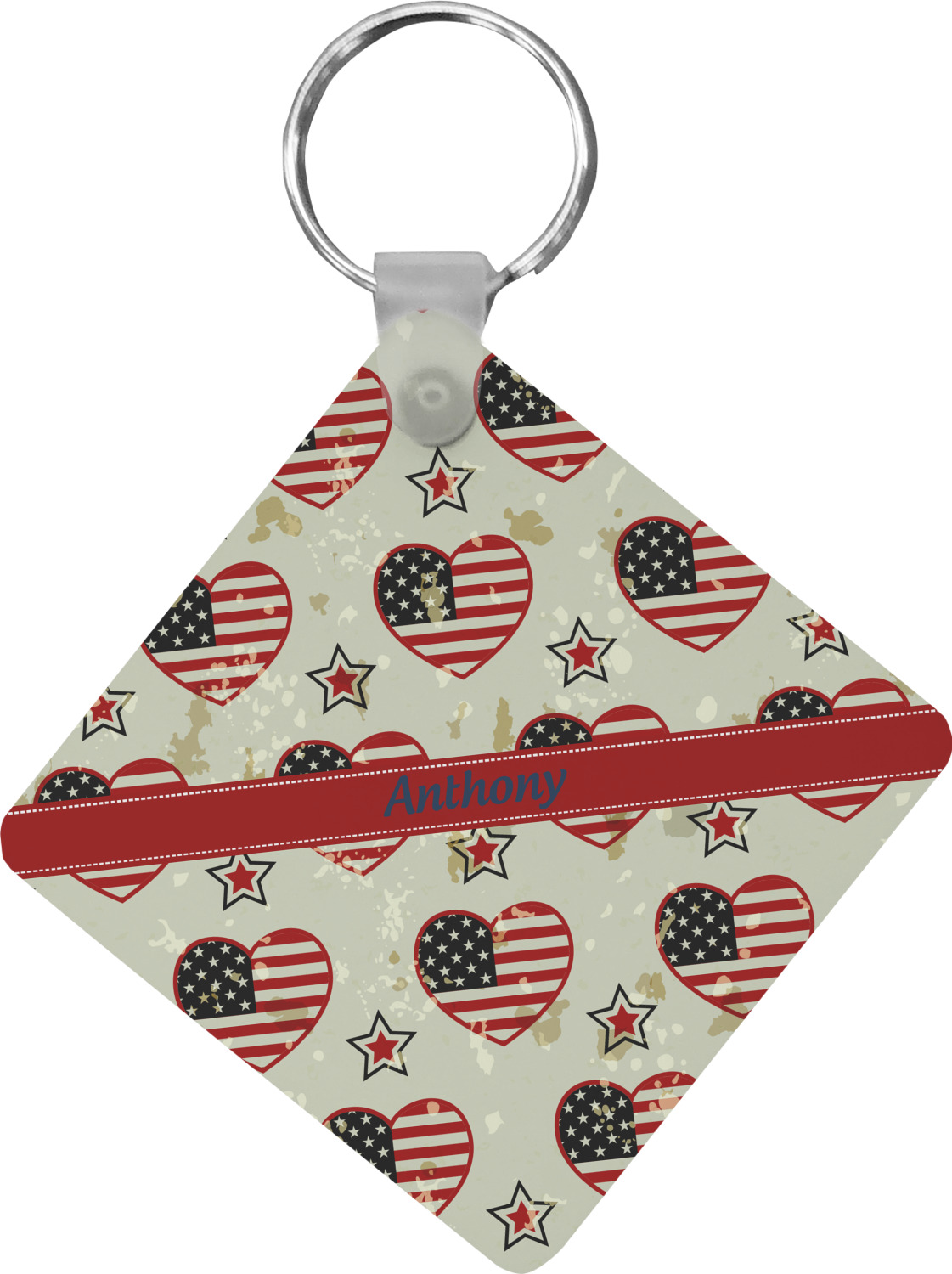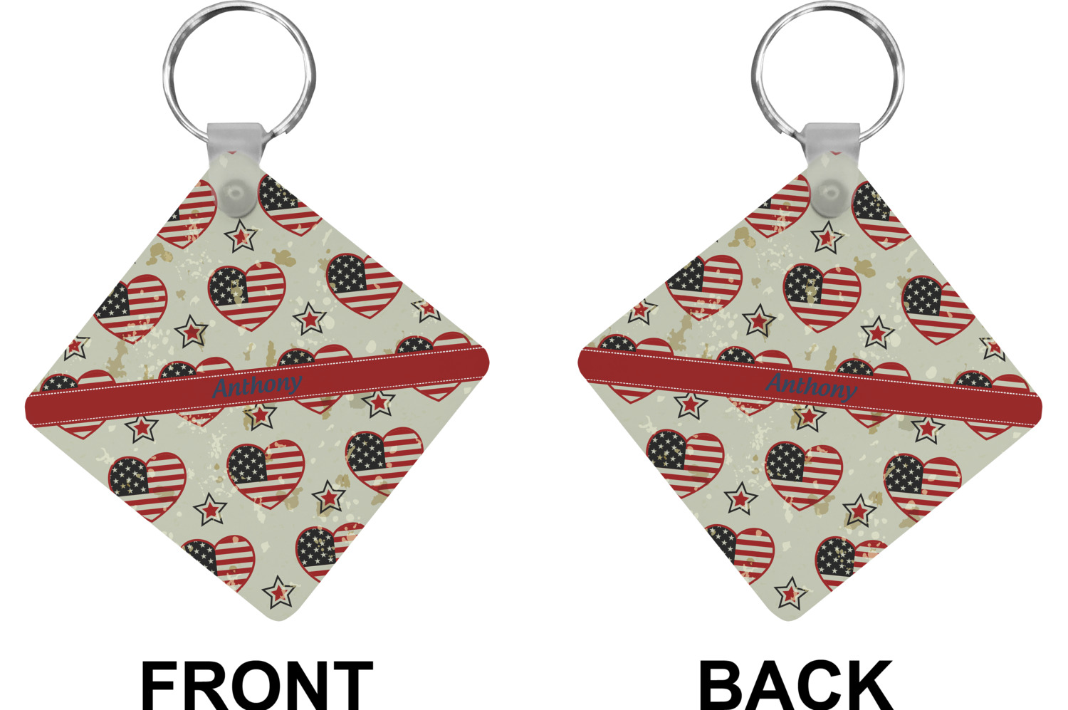 Our personalized keychains attach to the included metal, split key ring with a plastic, removable snap. Since a metal ring is included with your purchase, you have the liberty to keep your keys together on the ring, with or without your unique keychain. We offer this keychain in three different shapes: circle, heart, or diamond. We print your personalized design(s) on both sides of the key chain, and the surface has a glossy, reflective finish that only emphasizes your design. Each keychain is approximately 2.25 by 2.25 inches.