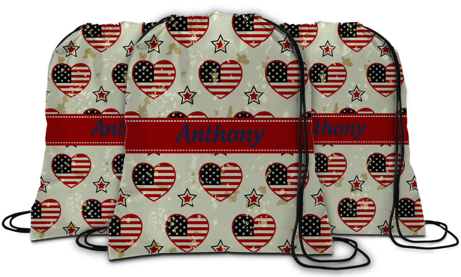 Our drawstring backpacks are custom made for you here in the USA. We offer a great selection of cinch bags and it is your choice to personalize them with the text of your choice, in the format of your choice i.e. monogram, name, initial, name & initial. We offer many different patterns and prints; and many of the patterns are available in 45 different colors.