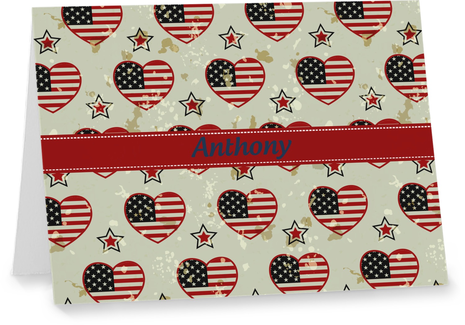 Our custom folded note cards are printed on premium 100lb. card stock and comes with white envelopes. The note card measure 5.5 by 4.25 inches and are blank on the inside for your handwritten message.