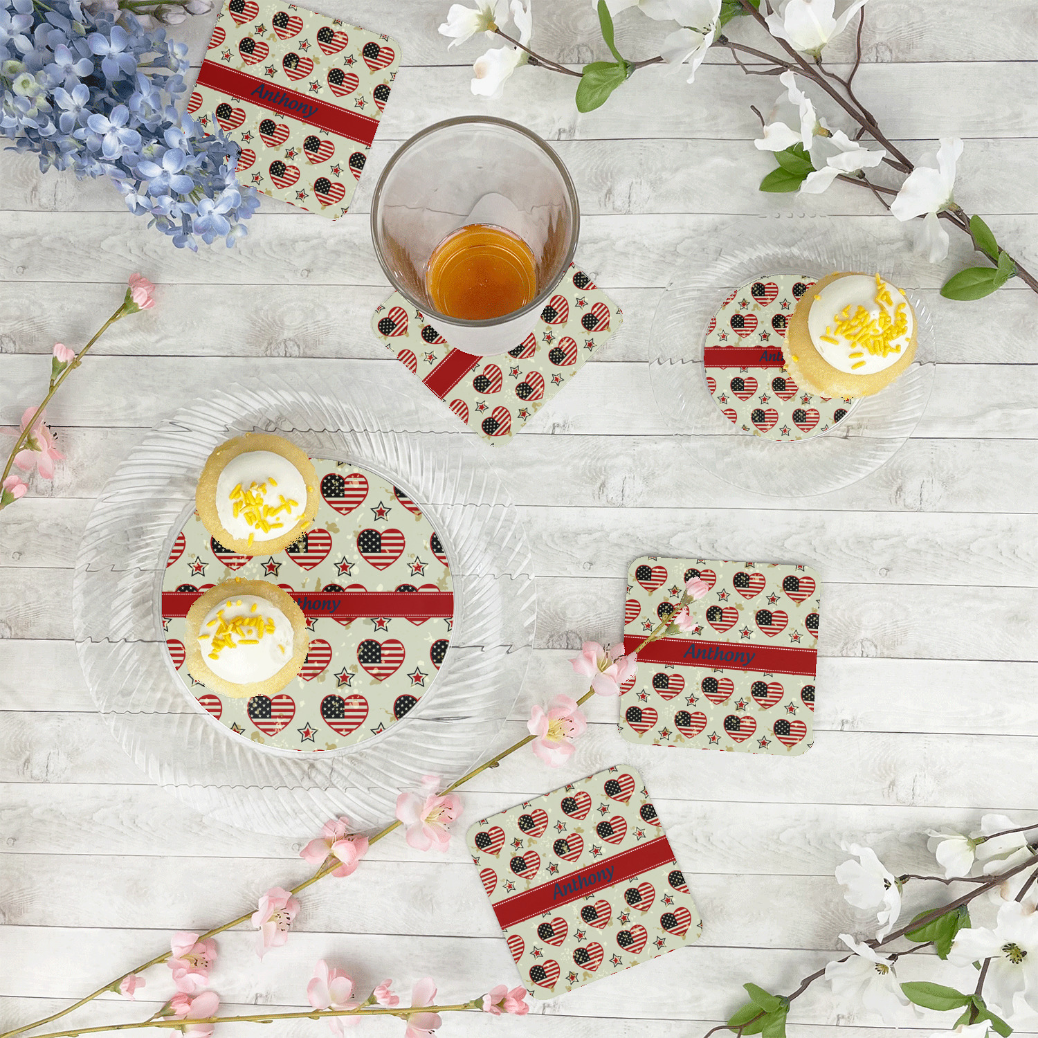 The 4th of July brings back memories of sweet lemonade, summertime, and the good ol' days in the USA. This design combines that red, white, and blue all-American vibe with a retro twist: the trendiest color of all, mint, and striped hearts.