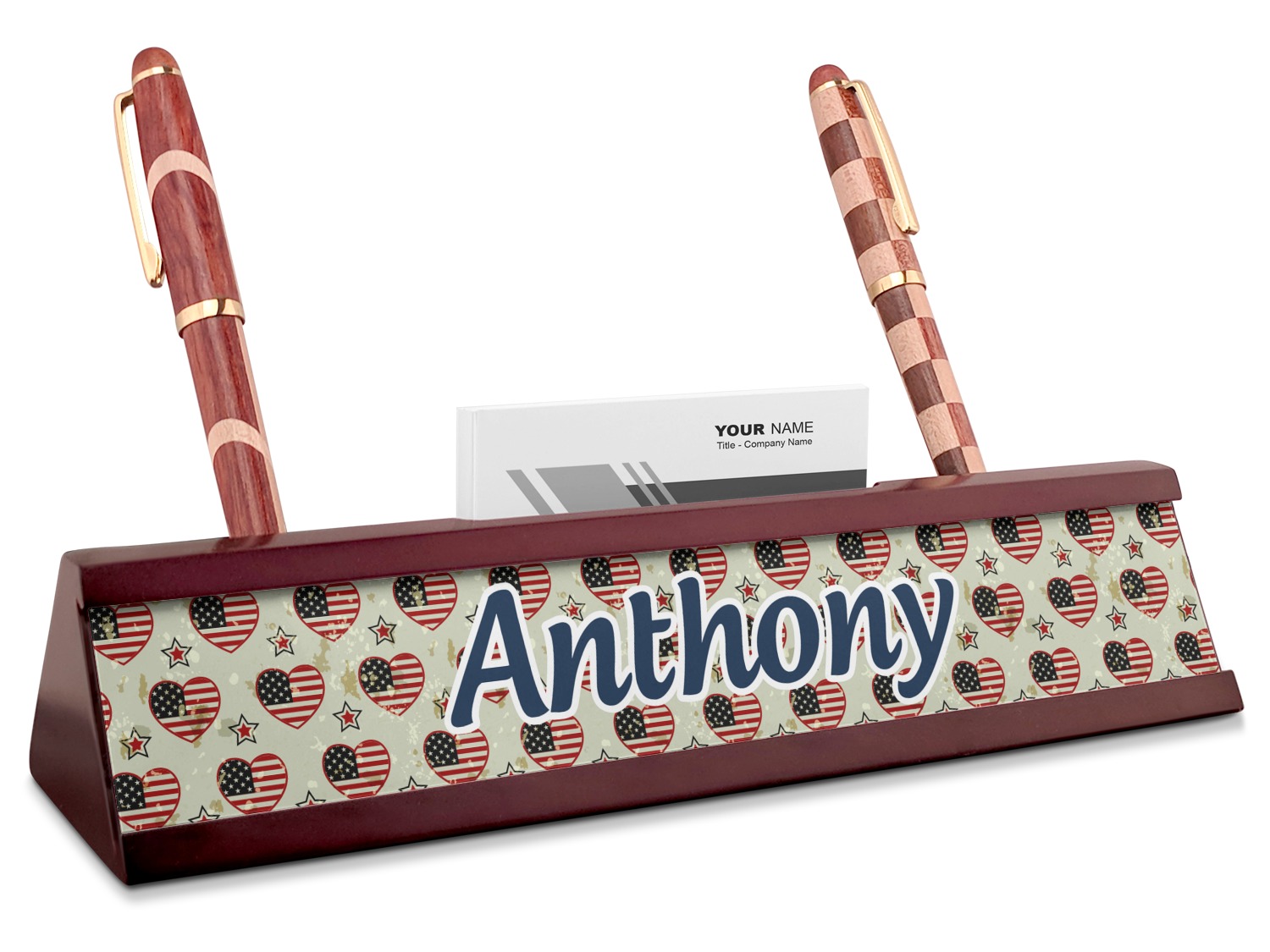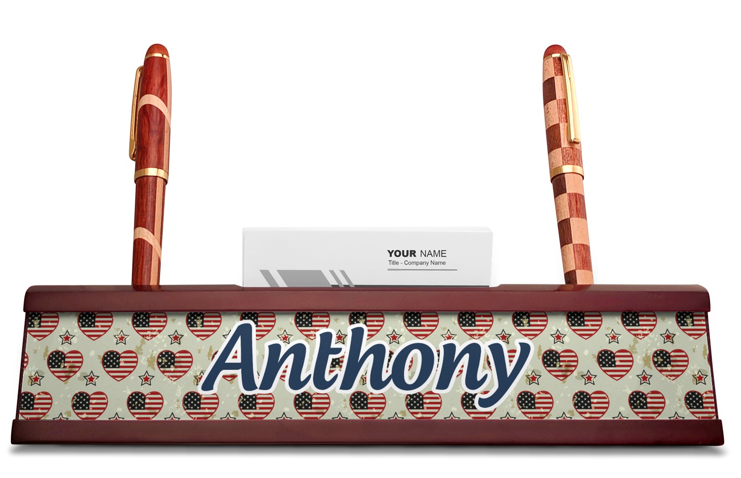 America / USA Designs for Red Mahogany Nameplates with Business Card Holder