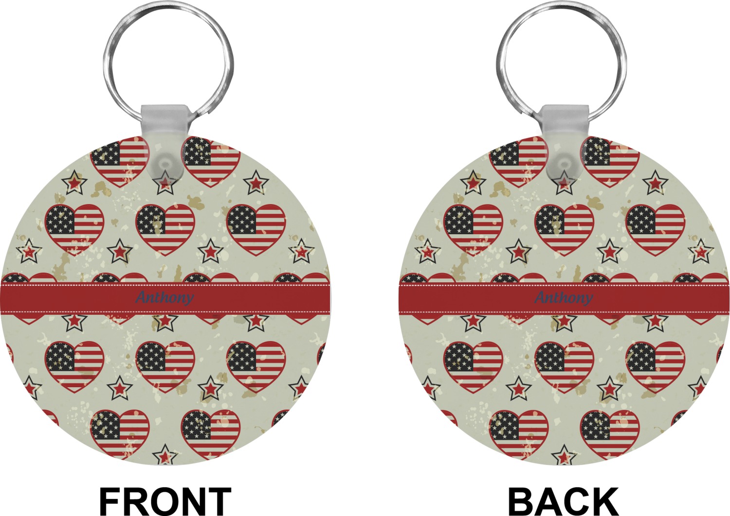 Our personalized keychains attach to the included metal, split key ring with a plastic, removable snap. Since a metal ring is included with your purchase, you have the liberty to keep your keys together on the ring, with or without your unique keychain. We offer this keychain in three different shapes: circle, heart, or diamond. We print your personalized design(s) on both sides of the key chain, and the surface has a glossy, reflective finish that only emphasizes your design. Each keychain is approximately 2.25 by 2.25 inches.