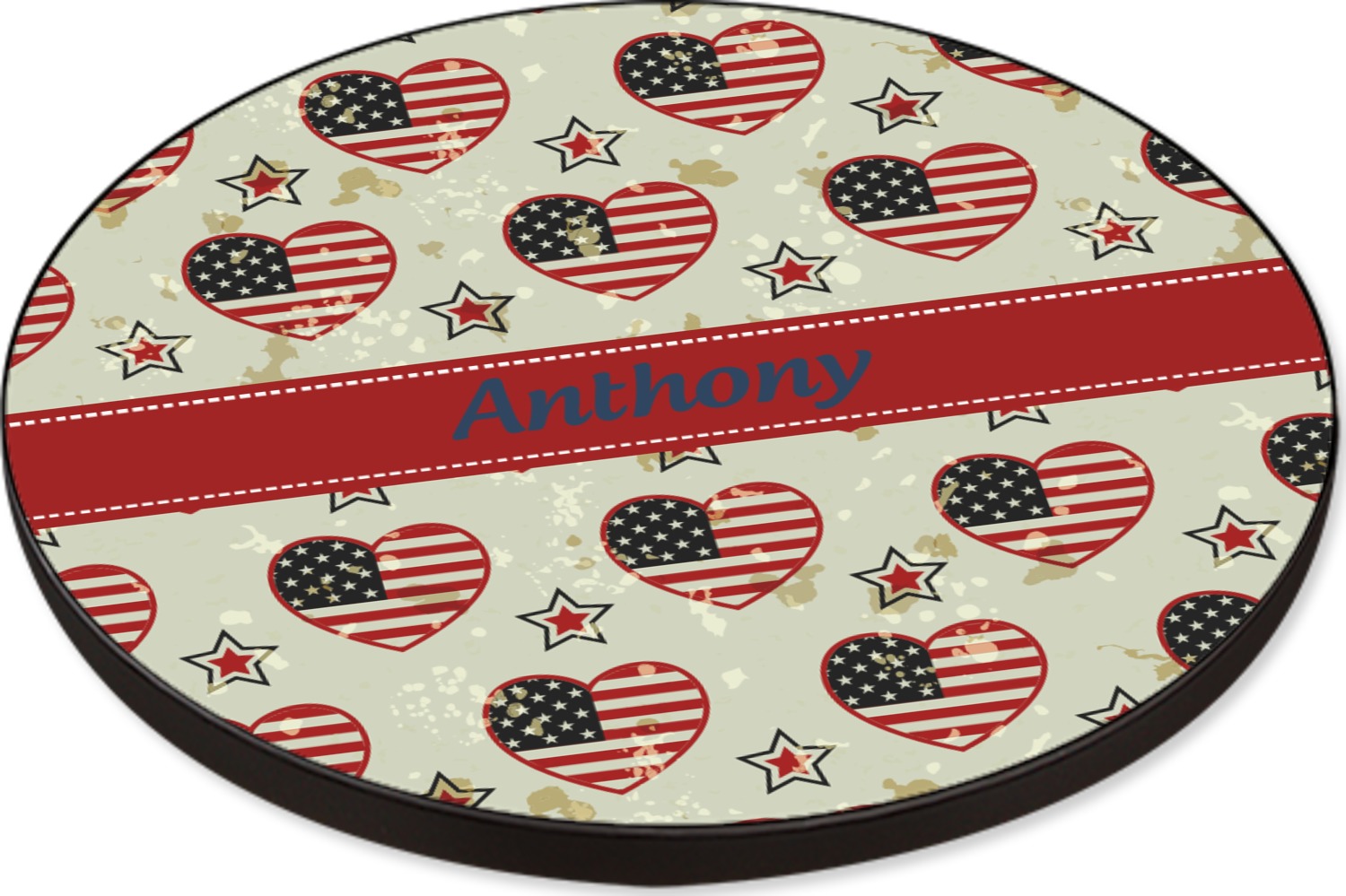 There is a red ribbon separating the perfectly sweat stained pattern that is the perfect place to add your own personalization.