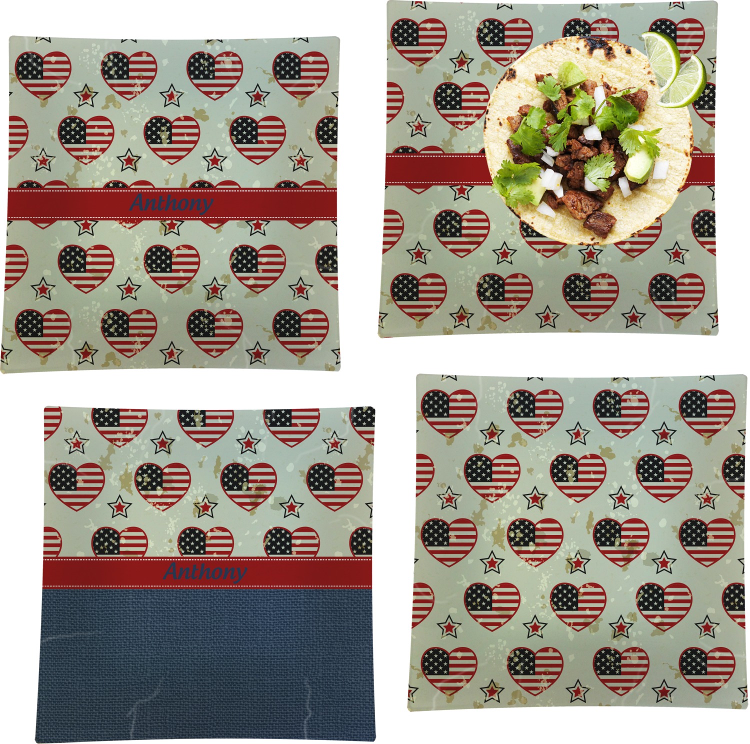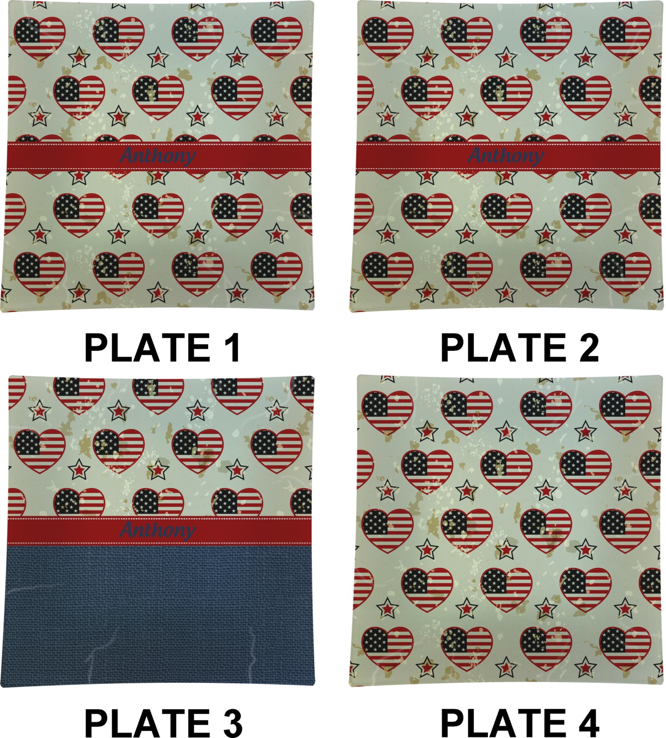 America / USA Designs for Glass Square Lunch / Dinner Plates 9.5" - Set of 4