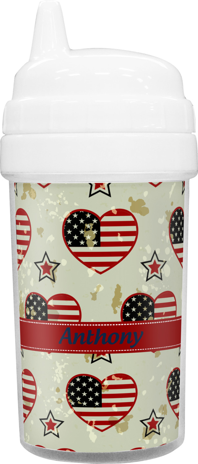 Our toddler cups are free of BPA, and have a twist-open lid so that you can easily fill and clean these cups for your young ones. Each cup also comes with a sippy nozzle to reduce spills. We offer these custom sippy cups in two different sizes; we have a baby sippy cup that holds 5 ounces, and a toddler sippy cup that holds 10 ounces. Your customization is printed on a premium glossy media insert that is placed within these toddler drinking cups.