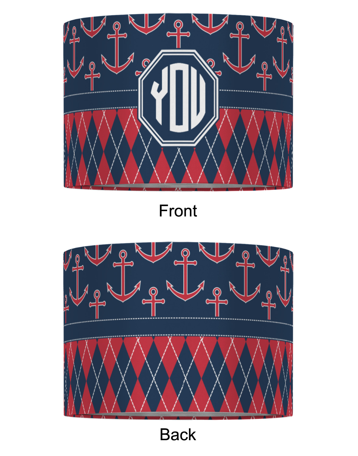 Come sail away with our Anchors & Argyle design. This design is a great balance of sea and land with nautical, red anchors on navy background and preppy red and navy argyle. Our design shown in bold navy and red, but the colors can be customized.