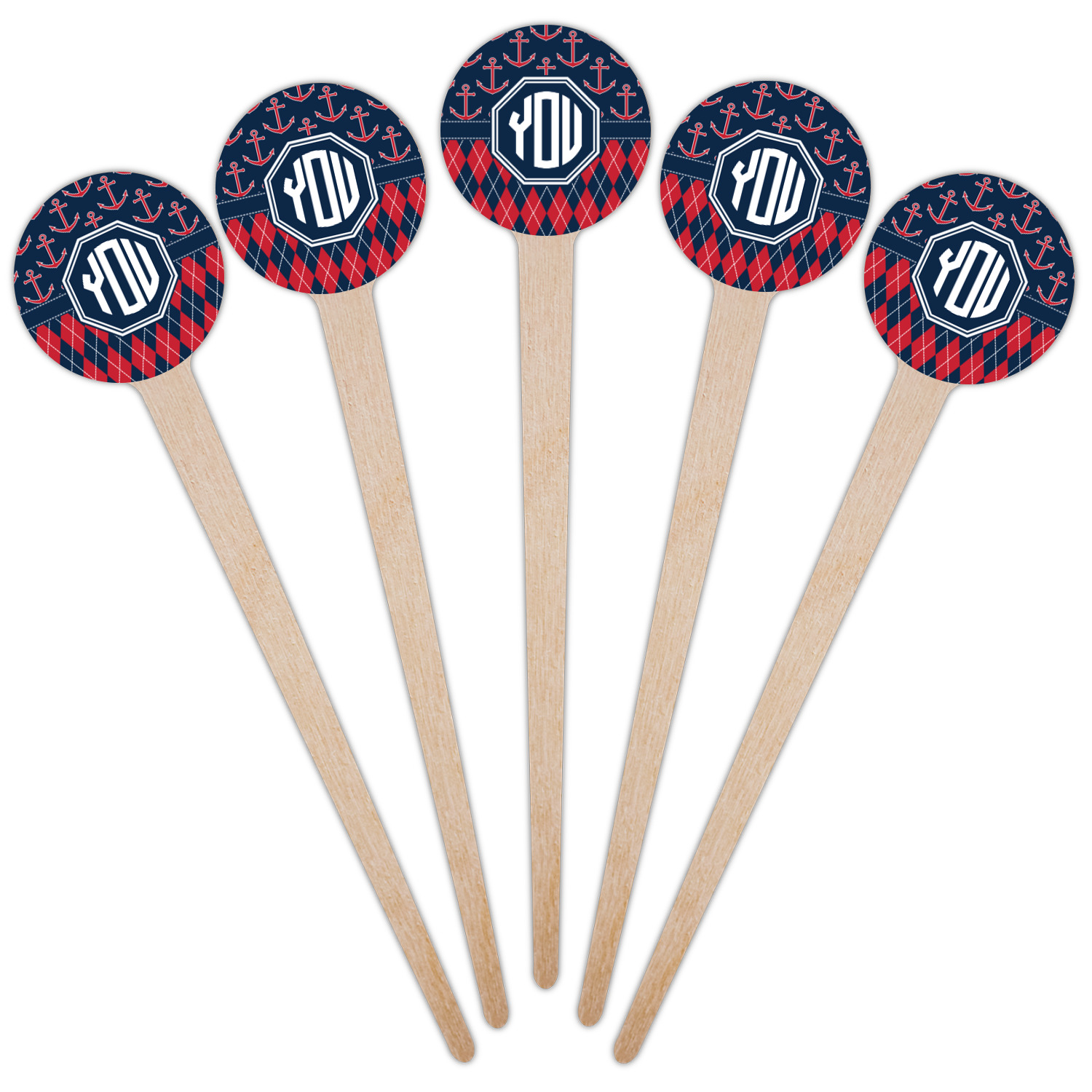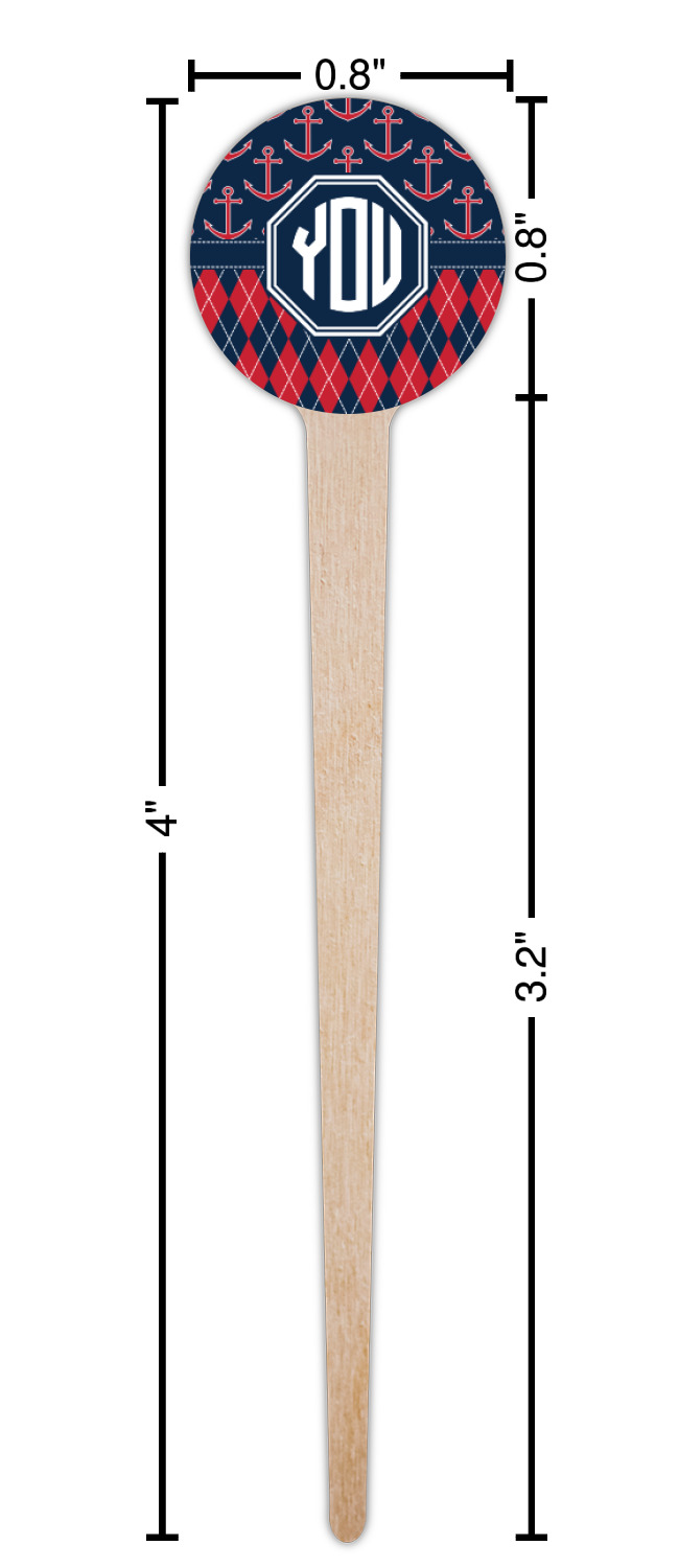 Coastal / Beach Style Designs for 4" Round Wooden Food Picks - Single-Sided