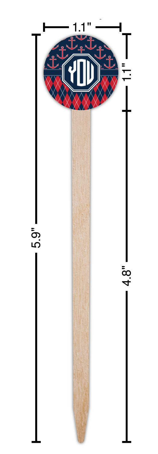 Coastal / Beach Style Designs for 6" Round Wooden Food Picks - Single-Sided