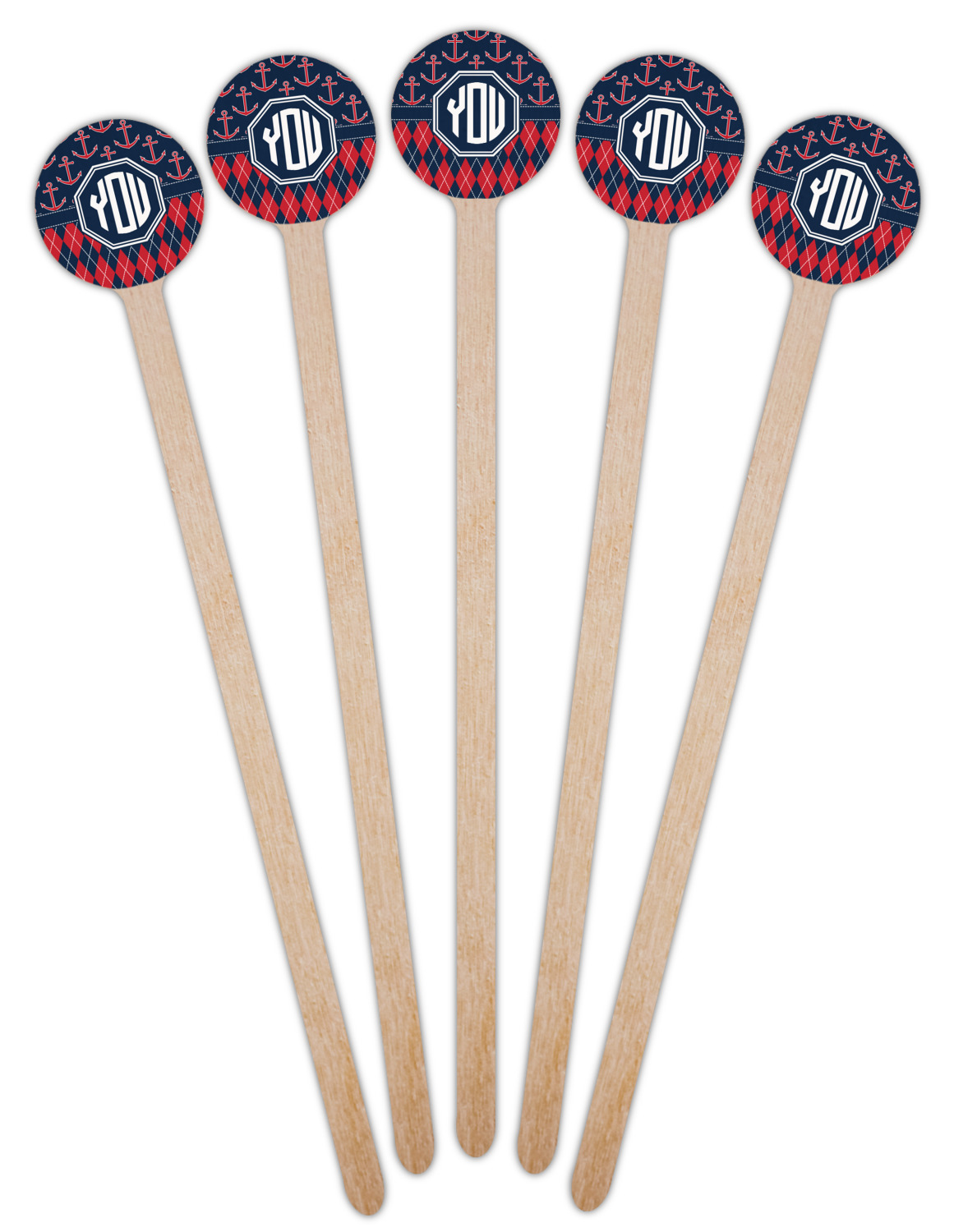 Coastal / Beach Style Designs for 7.5" Round Wooden Stir Sticks - Single-Sided