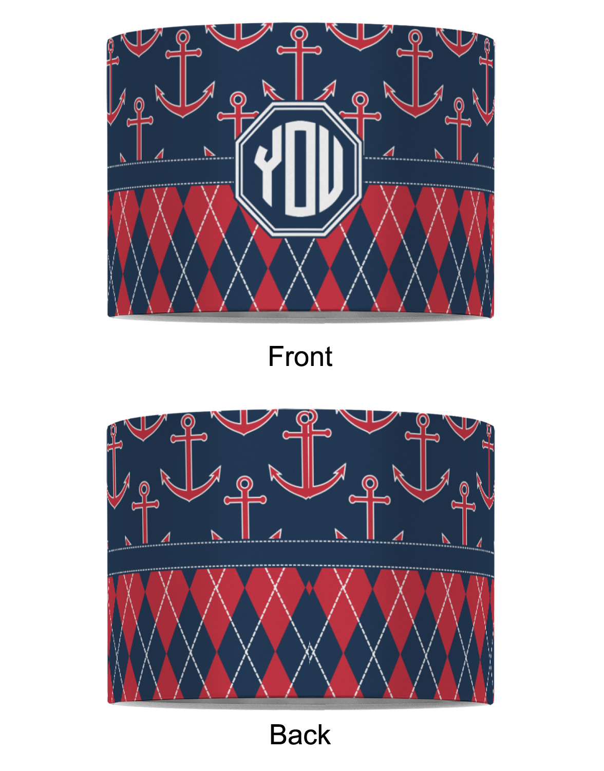 Come sail away with our Anchors & Argyle design. This design is a great balance of sea and land with nautical, red anchors on navy background and preppy red and navy argyle. Our design shown in bold navy and red, but the colors can be customized.