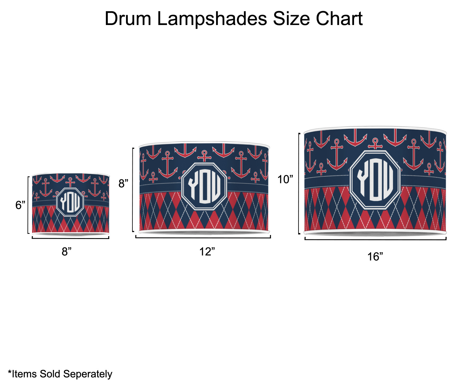 Our customized lamp shades also come in 3 different sizes: 8", 12" and 16", measuring at 8" in diameter by 6" tall, 12" in diameter by 8" tall, and 16" in diameter by 10" tall, respectively.