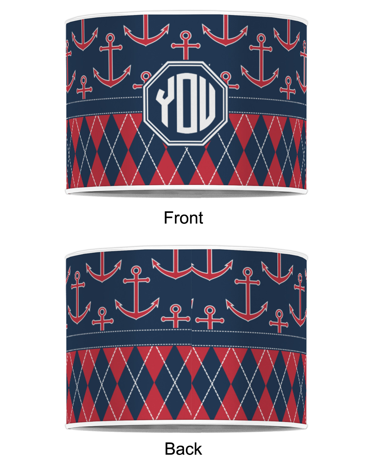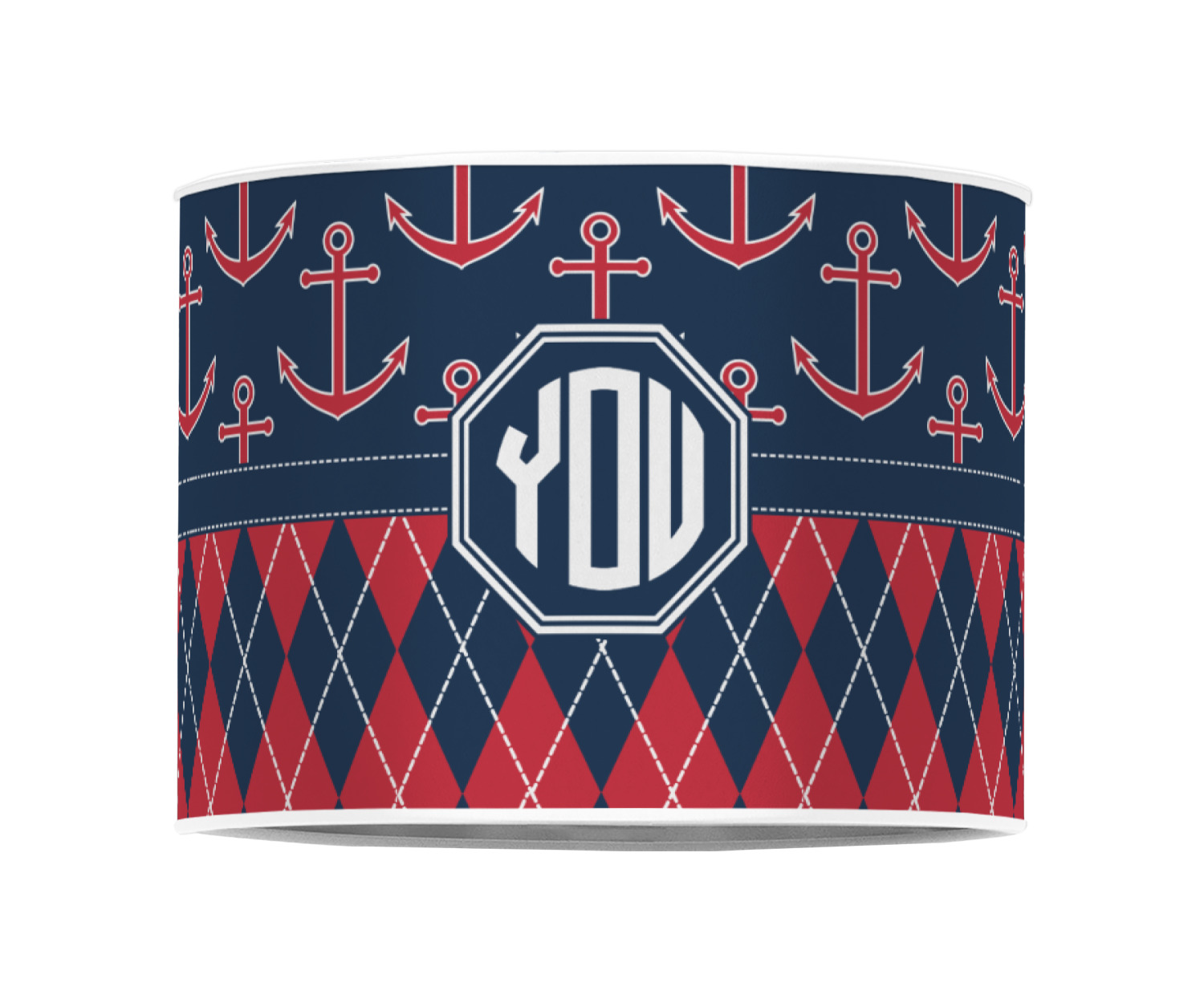 Come sail away with our Anchors & Argyle design. This design is a great balance of sea and land with nautical, red anchors on navy background and preppy red and navy argyle. Our design shown in bold navy and red, but the colors can be customized.