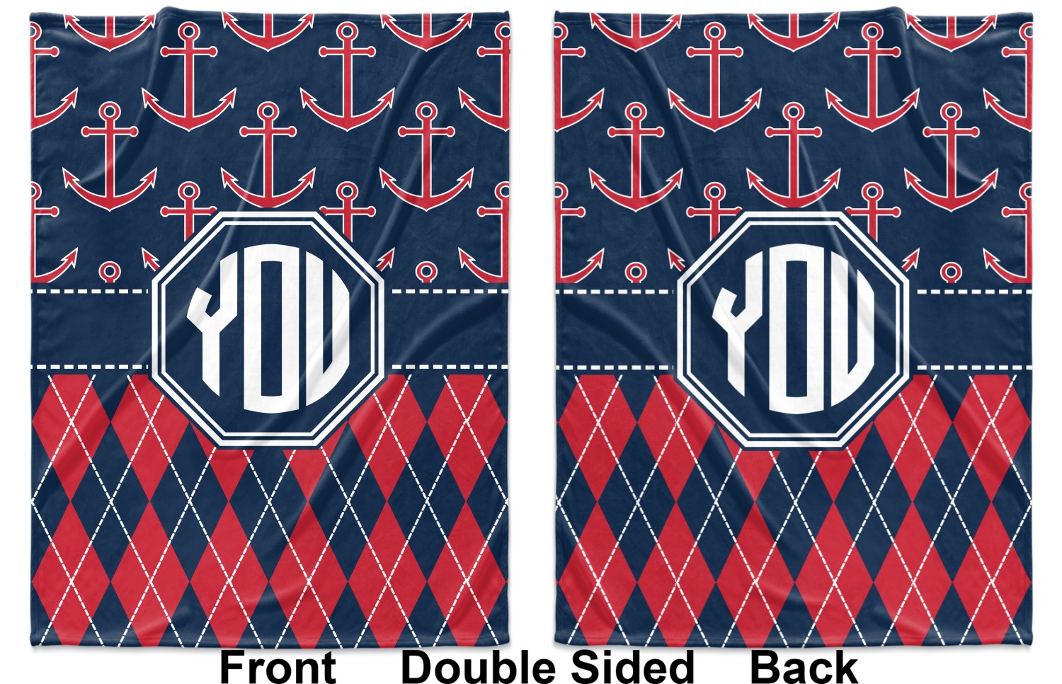 Come sail away with our Anchors & Argyle design. This design is a great balance of sea and land with nautical, red anchors on navy background and preppy red and navy argyle. Our design shown in bold navy and red, but the colors can be customized.