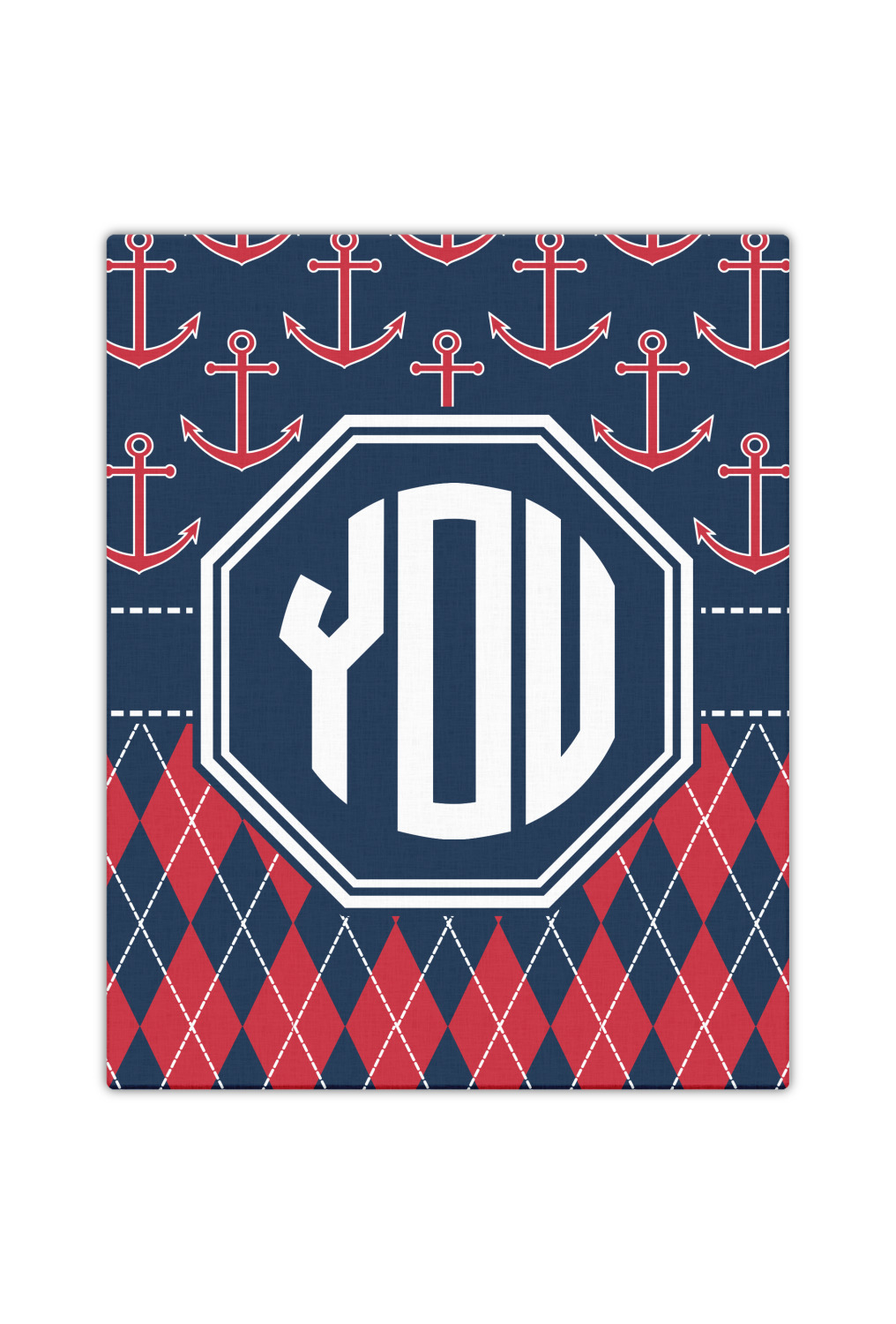 Come sail away with our Anchors & Argyle design. This design is a great balance of sea and land with nautical, red anchors on navy background and preppy red and navy argyle. Our design shown in bold navy and red, but the colors can be customized.