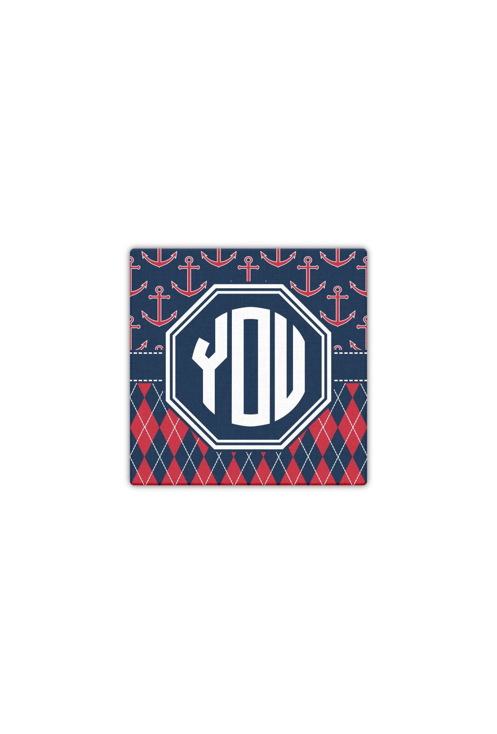 Come sail away with our Anchors & Argyle design. This design is a great balance of sea and land with nautical, red anchors on navy background and preppy red and navy argyle. Our design shown in bold navy and red, but the colors can be customized.