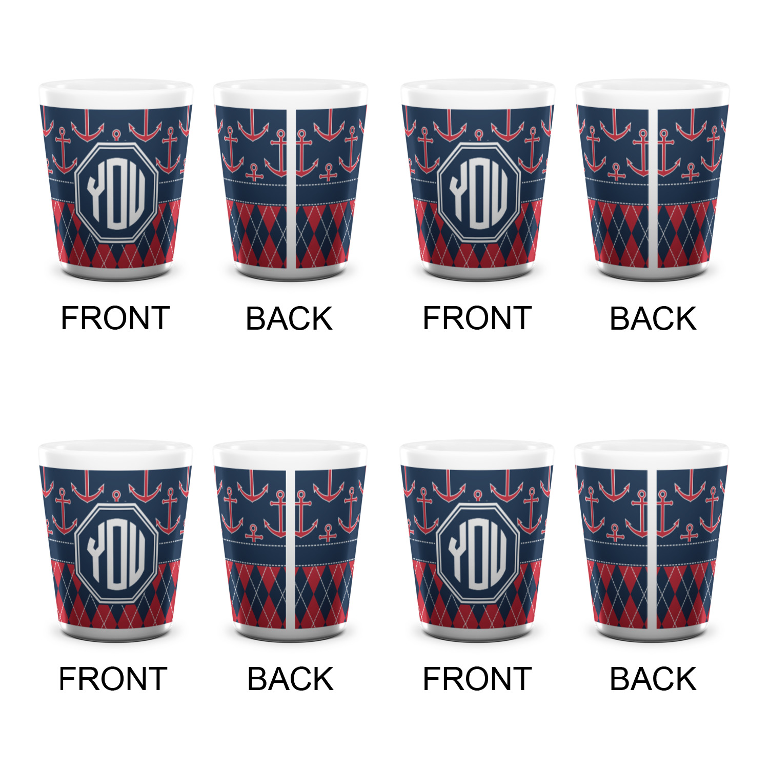 Made from ceramic these shot glasses are printed in full color with the design of your choice. These are a standard 1.5oz size and stand 2.25" tall. Available in a full white ceramic or a two-tone with a black color inside the shot glass. Buy a single or a set of 4, all of which can be designed separately to get you just what you want and need.