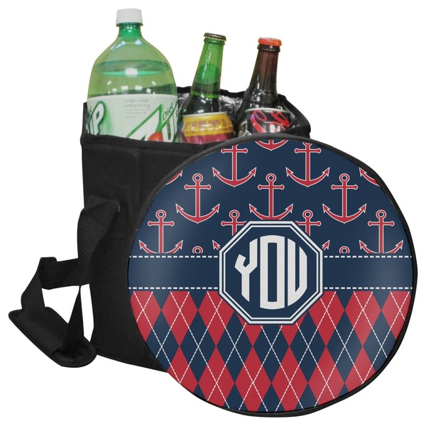 Come sail away with our Anchors & Argyle design. This design is a great balance of sea and land with nautical, red anchors on navy background and preppy red and navy argyle. Our design shown in bold navy and red, but the colors can be customized.