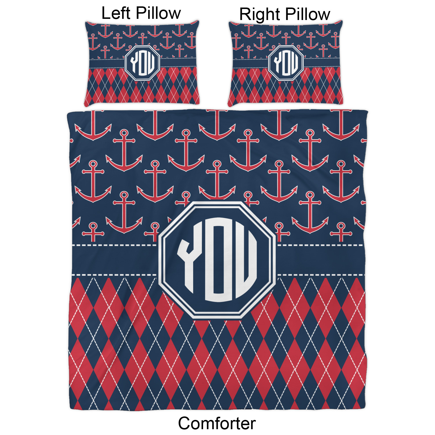 Come sail away with our Anchors & Argyle design. This design is a great balance of sea and land with nautical, red anchors on navy background and preppy red and navy argyle. Our design shown in bold navy and red, but the colors can be customized.