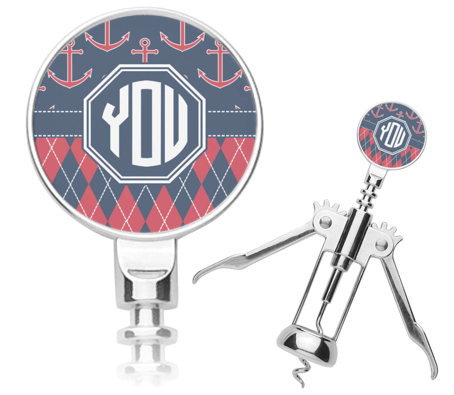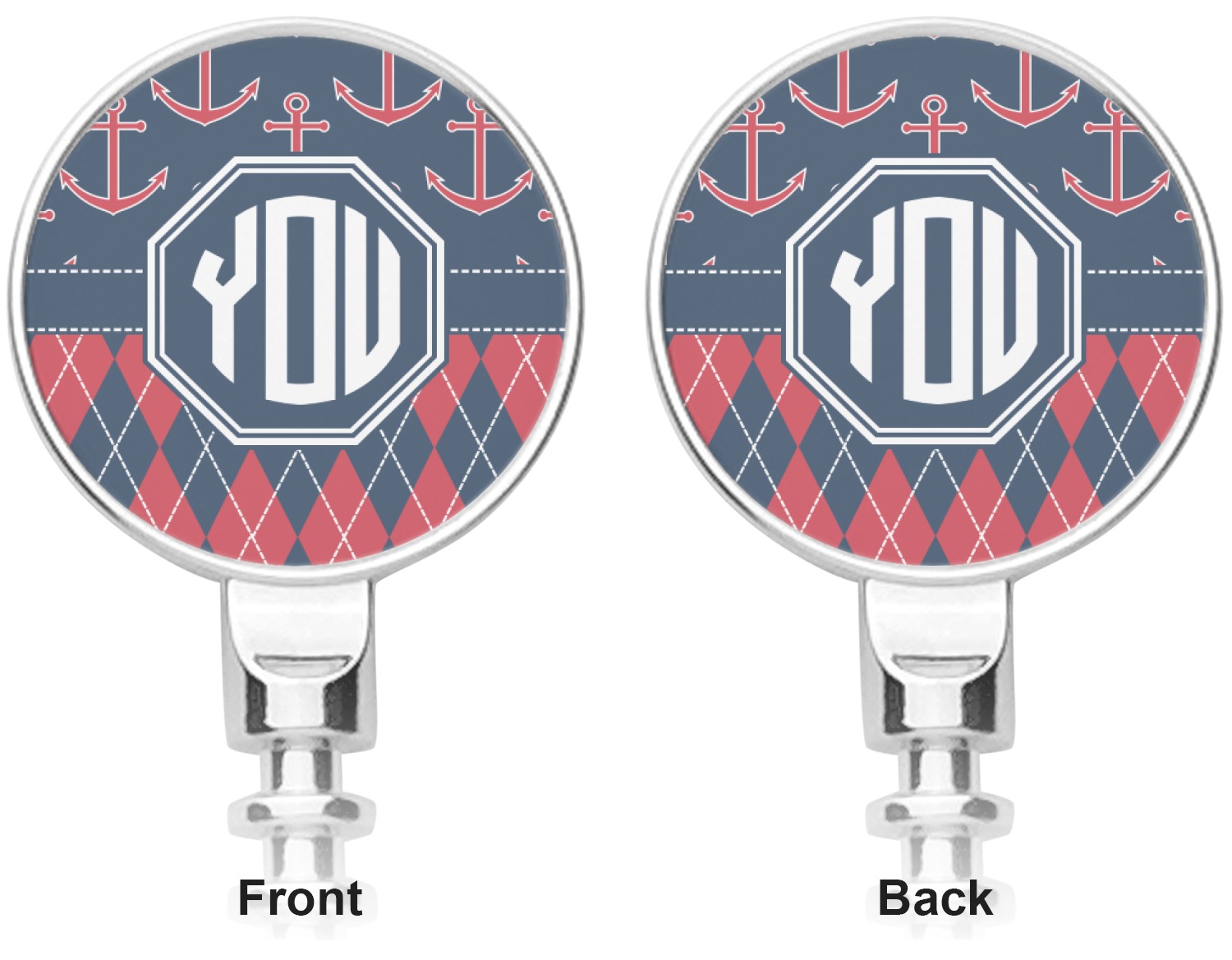 Come sail away with our Anchors & Argyle design. This design is a great balance of sea and land with nautical, red anchors on navy background and preppy red and navy argyle. Our design shown in bold navy and red, but the colors can be customized.