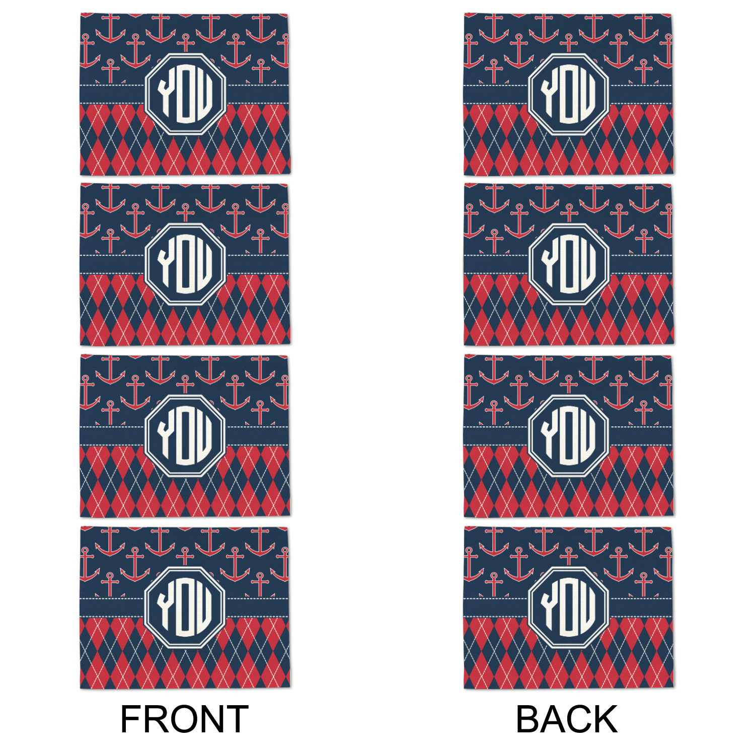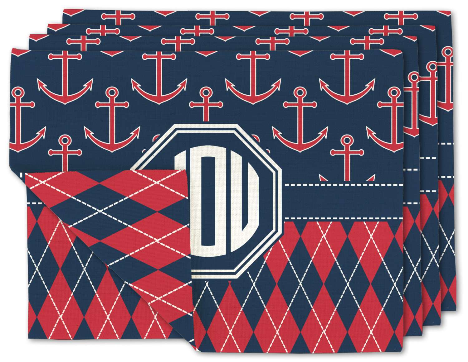 Come sail away with our Anchors & Argyle design. This design is a great balance of sea and land with nautical, red anchors on navy background and preppy red and navy argyle. Our design shown in bold navy and red, but the colors can be customized.