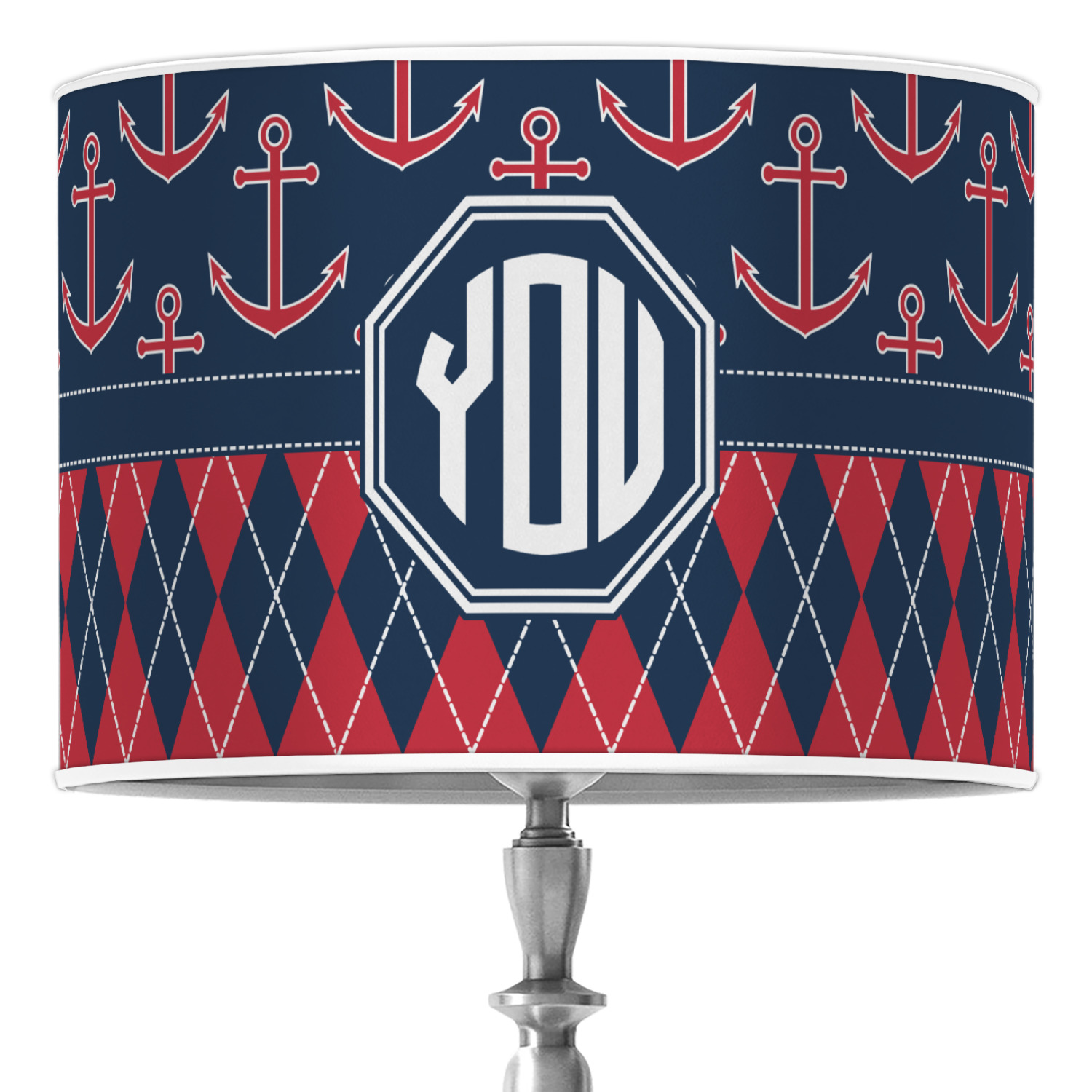 Come sail away with our Anchors & Argyle design. This design is a great balance of sea and land with nautical, red anchors on navy background and preppy red and navy argyle. Our design shown in bold navy and red, but the colors can be customized.