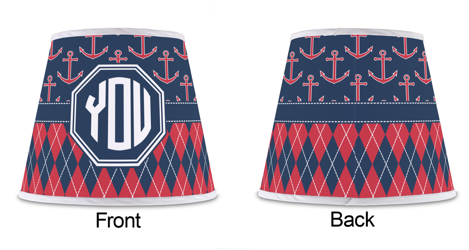 Come sail away with our Anchors & Argyle design. This design is a great balance of sea and land with nautical, red anchors on navy background and preppy red and navy argyle. Our design shown in bold navy and red, but the colors can be customized.