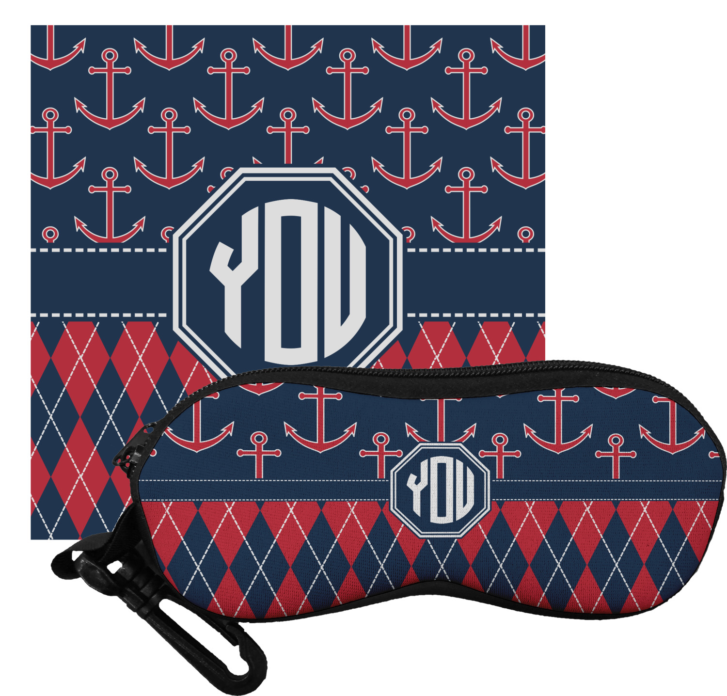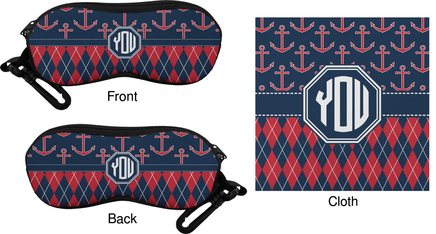 Come sail away with our Anchors & Argyle design. This design is a great balance of sea and land with nautical, red anchors on navy background and preppy red and navy argyle. Our design shown in bold navy and red, but the colors can be customized.