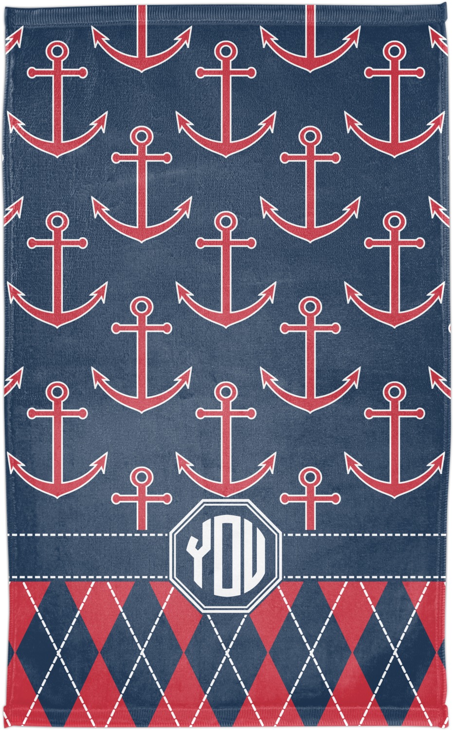 Come sail away with our Anchors & Argyle design. This design is a great balance of sea and land with nautical, red anchors on navy background and preppy red and navy argyle. Our design shown in bold navy and red, but the colors can be customized.