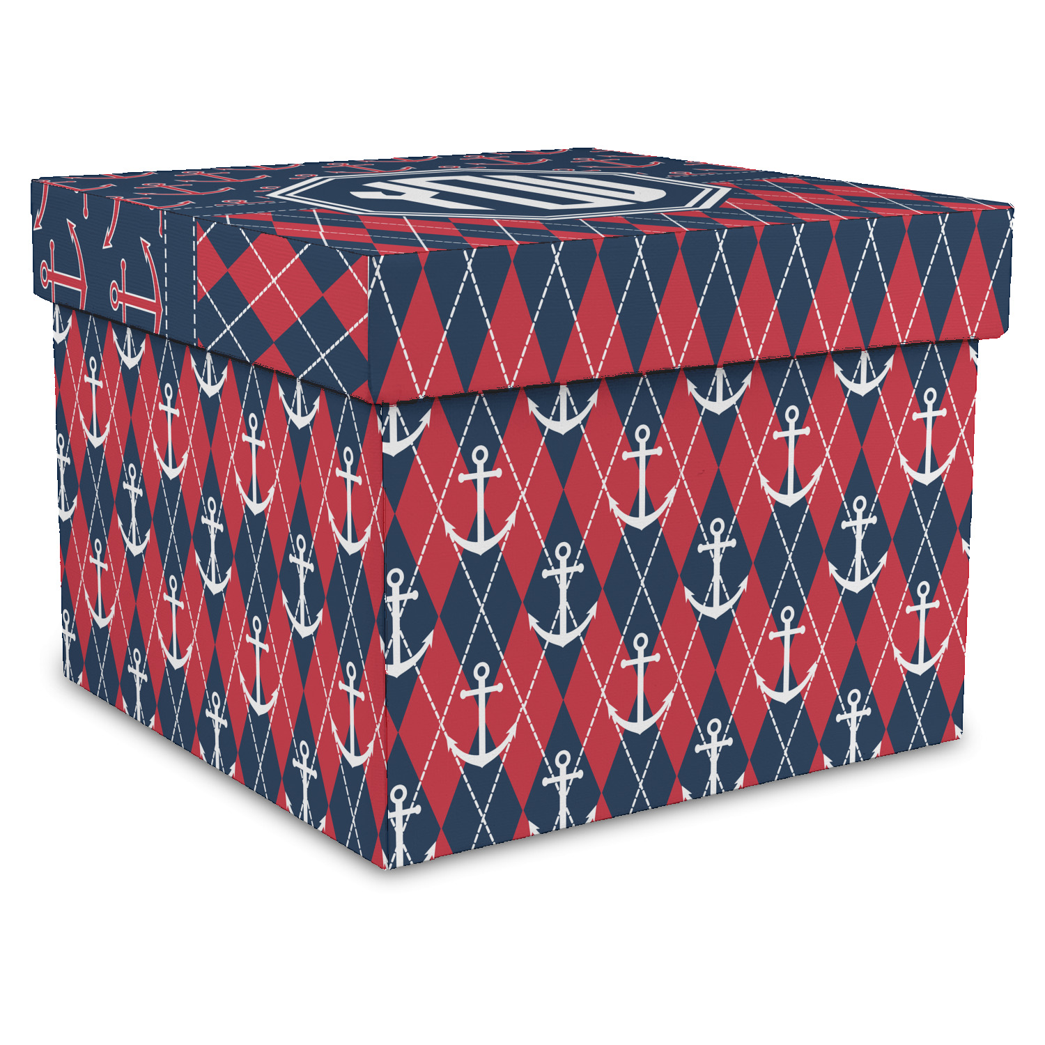 Come sail away with our Anchors & Argyle design. This design is a great balance of sea and land with nautical, red anchors on navy background and preppy red and navy argyle. Our design shown in bold navy and red, but the colors can be customized.