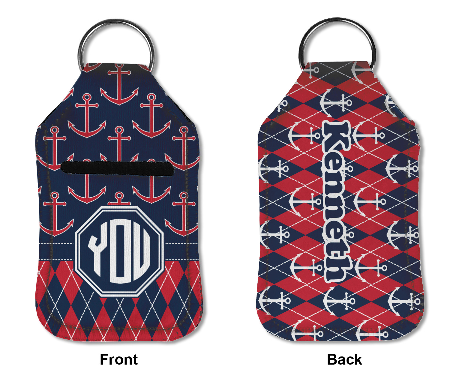 Each hand sanitizer holder comes with its own empty travel-sized, refillable hand sanitizer sure to fit snug in your customized sanitizer case! Our hand sanitizer cases are a durable, yet soft neoprene material sure to last any daily activities or travel agenda. Customize and personalize a hand sanitizer bottle holder with one of our two sizes - small (4.25" x 2.25") or large (5.5" x 2.5"). Each travel sanitizer holder comes with a keyring for attachment on bags, keys, or more!