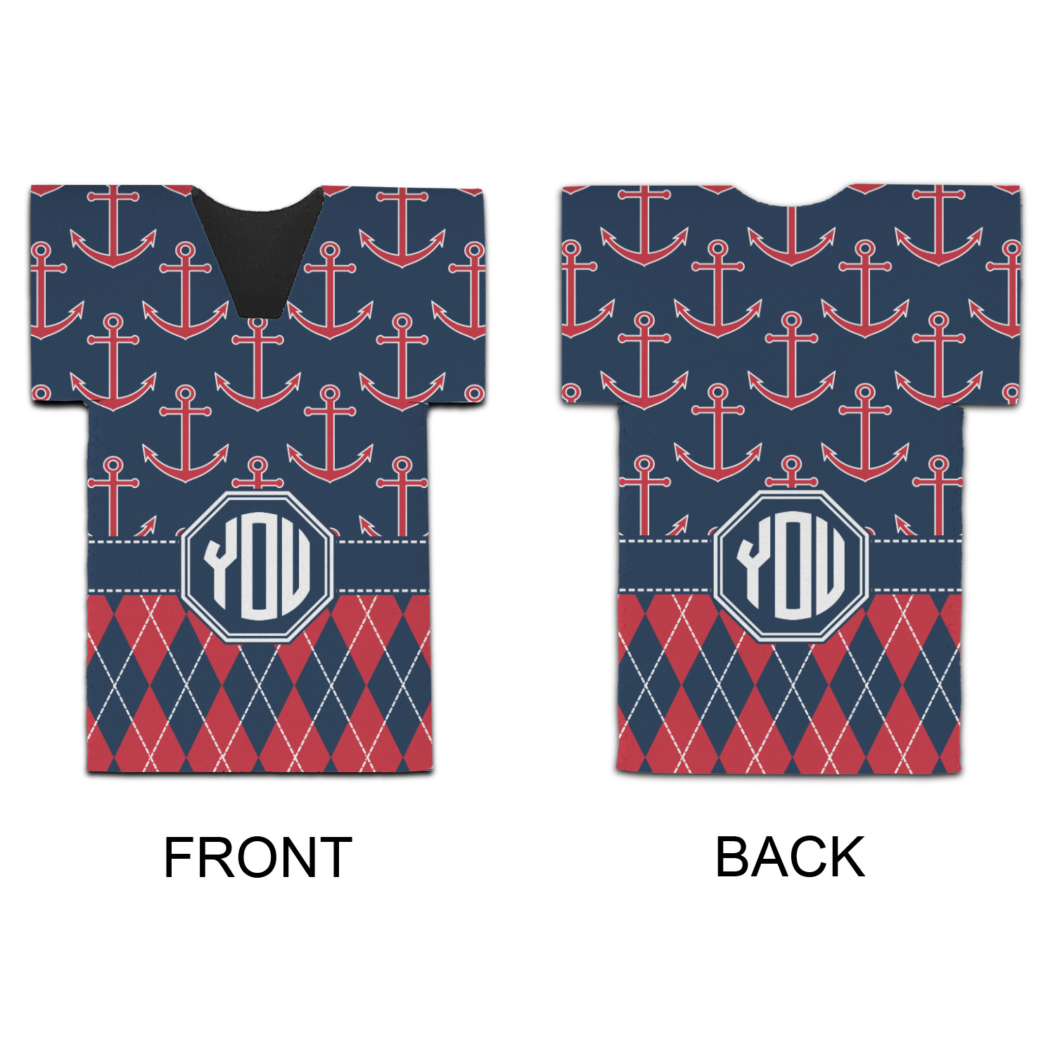 Come sail away with our Anchors & Argyle design. This design is a great balance of sea and land with nautical, red anchors on navy background and preppy red and navy argyle. Our design shown in bold navy and red, but the colors can be customized.