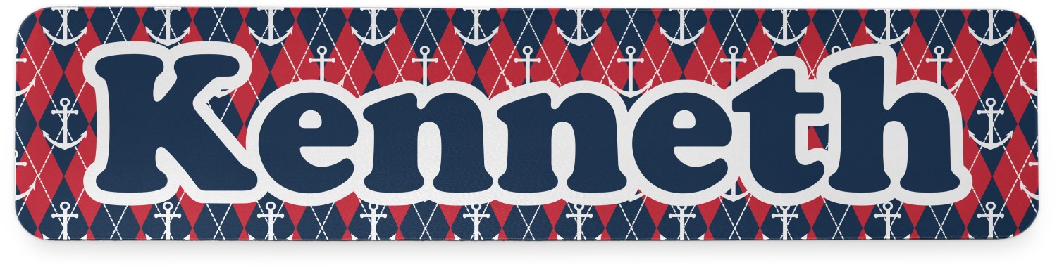 Come sail away with our Anchors & Argyle design. This design is a great balance of sea and land with nautical, red anchors on navy background and preppy red and navy argyle. Our design shown in bold navy and red, but the colors can be customized.