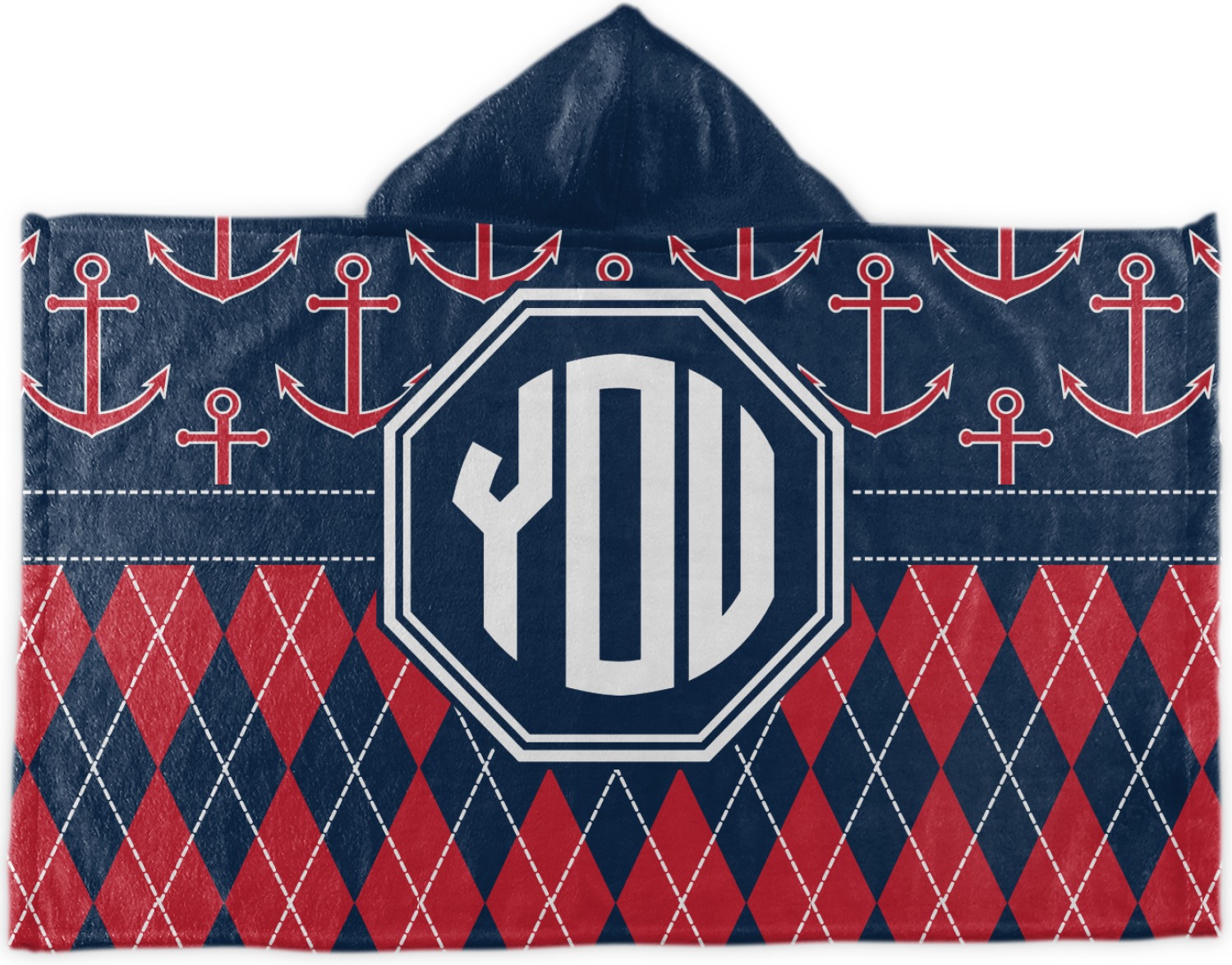 Come sail away with our Anchors & Argyle design. This design is a great balance of sea and land with nautical, red anchors on navy background and preppy red and navy argyle. Our design shown in bold navy and red, but the colors can be customized.
