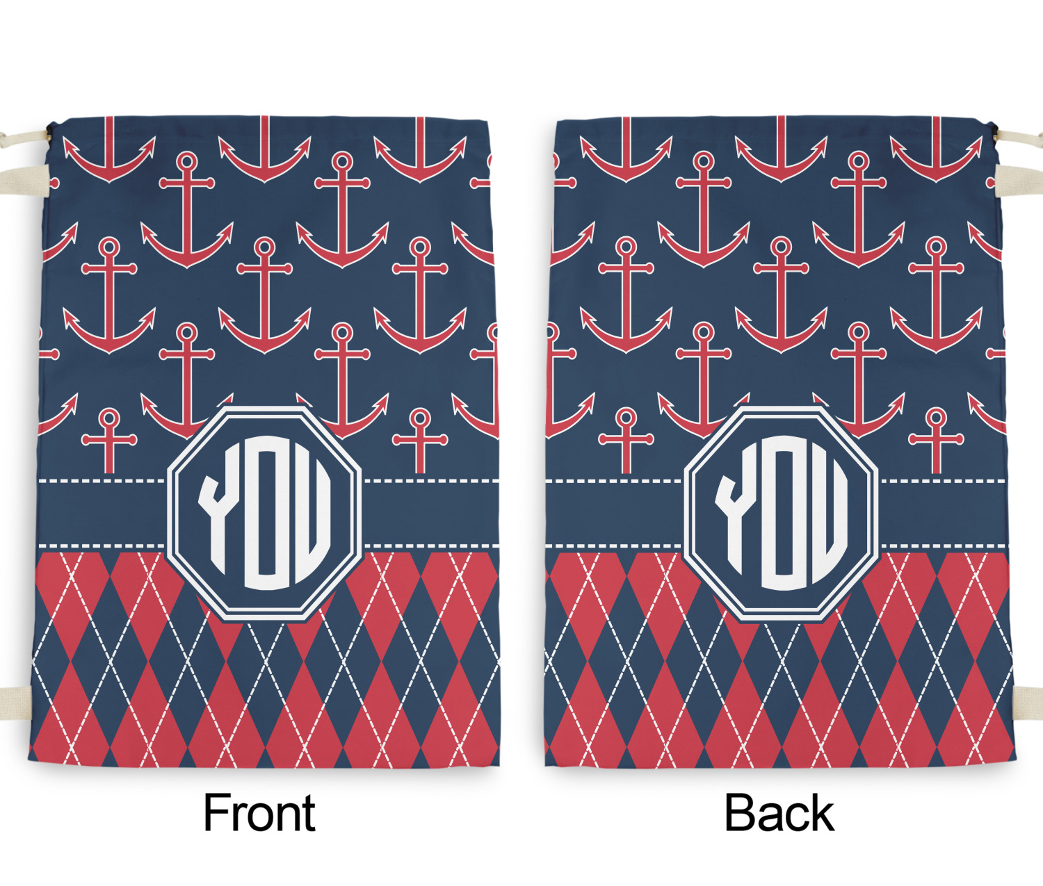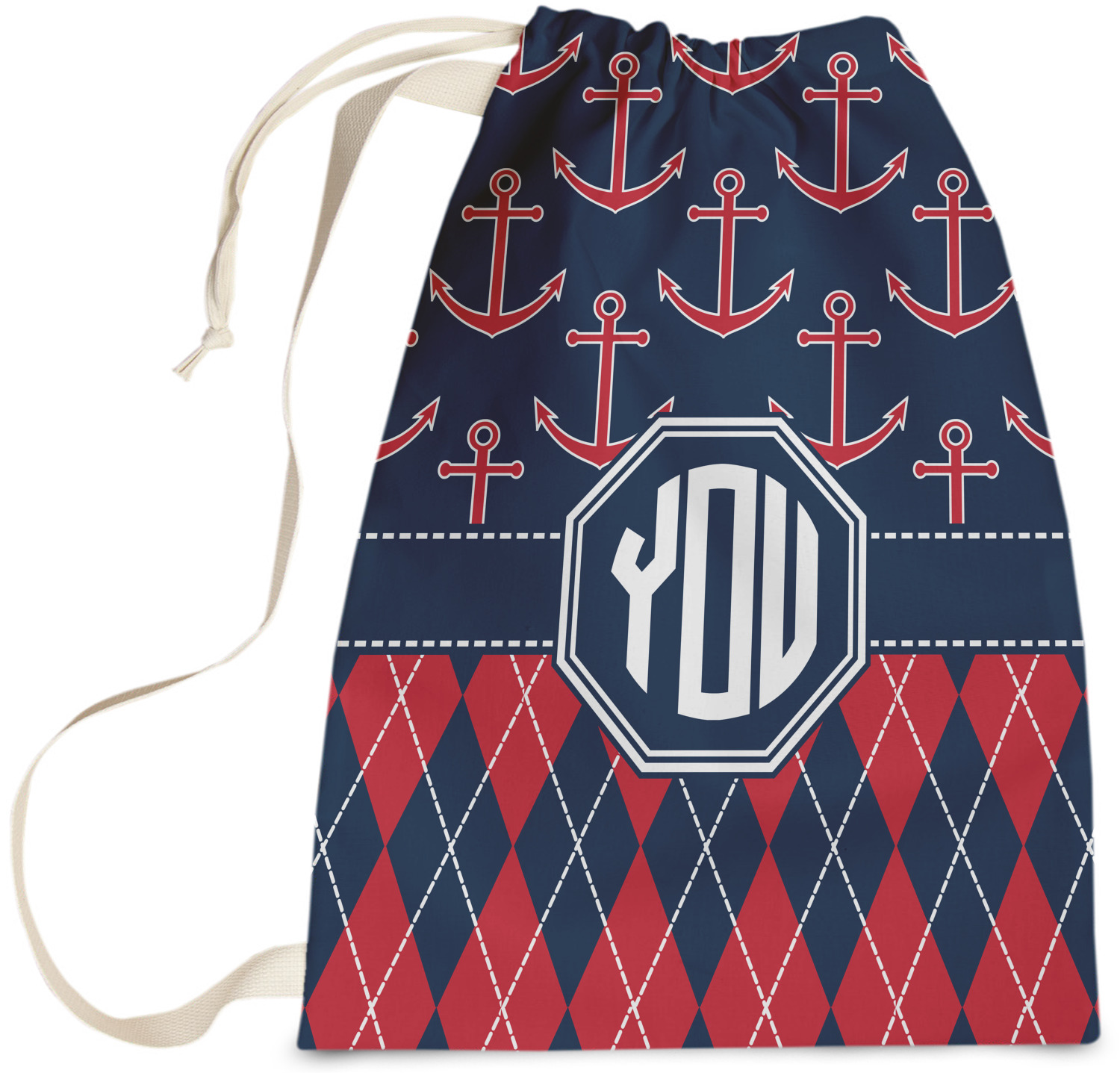 Come sail away with our Anchors & Argyle design. This design is a great balance of sea and land with nautical, red anchors on navy background and preppy red and navy argyle. Our design shown in bold navy and red, but the colors can be customized.