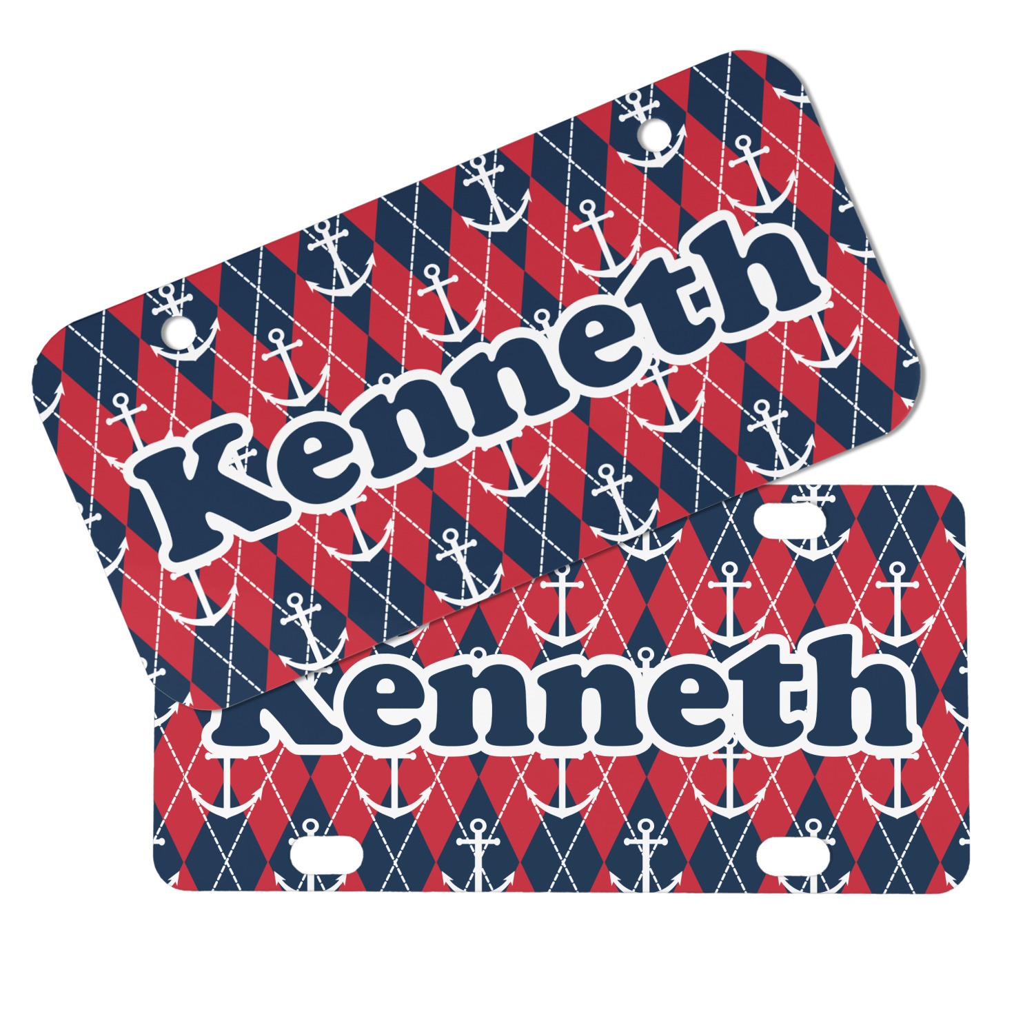 Come sail away with our Anchors & Argyle design. This design is a great balance of sea and land with nautical, red anchors on navy background and preppy red and navy argyle. Our design shown in bold navy and red, but the colors can be customized.