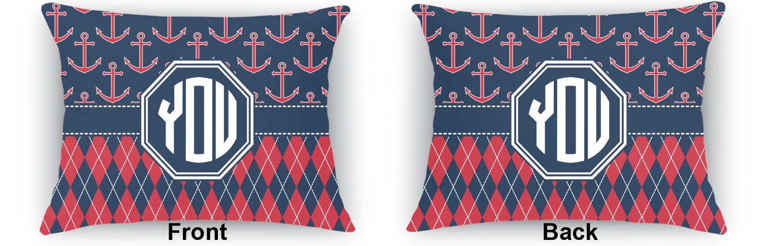 Come sail away with our Anchors & Argyle design. This design is a great balance of sea and land with nautical, red anchors on navy background and preppy red and navy argyle. Our design shown in bold navy and red, but the colors can be customized.