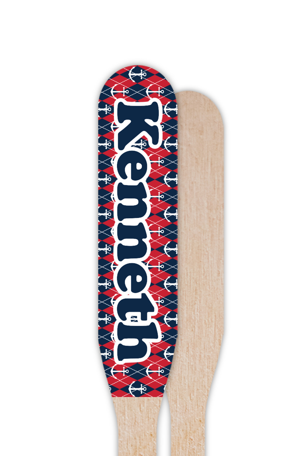 Come sail away with our Anchors & Argyle design. This design is a great balance of sea and land with nautical, red anchors on navy background and preppy red and navy argyle. Our design shown in bold navy and red, but the colors can be customized.