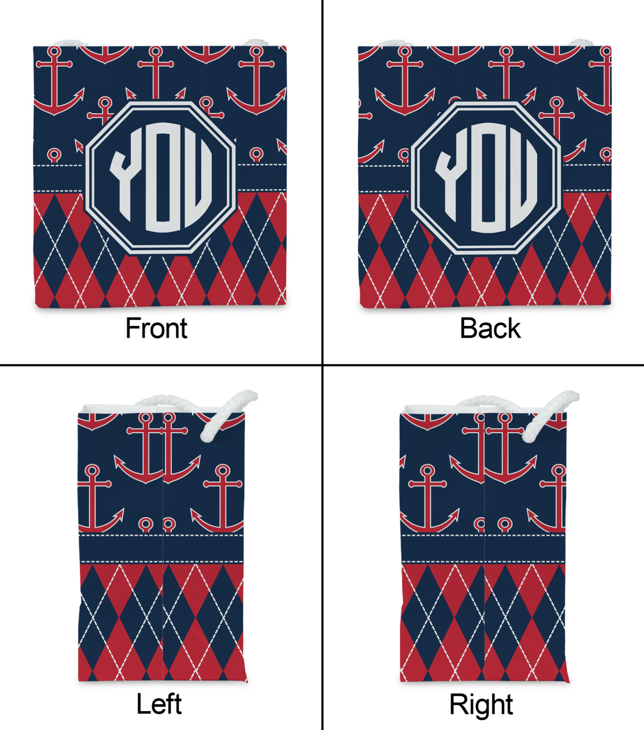 Come sail away with our Anchors & Argyle design. This design is a great balance of sea and land with nautical, red anchors on navy background and preppy red and navy argyle. Our design shown in bold navy and red, but the colors can be customized.
