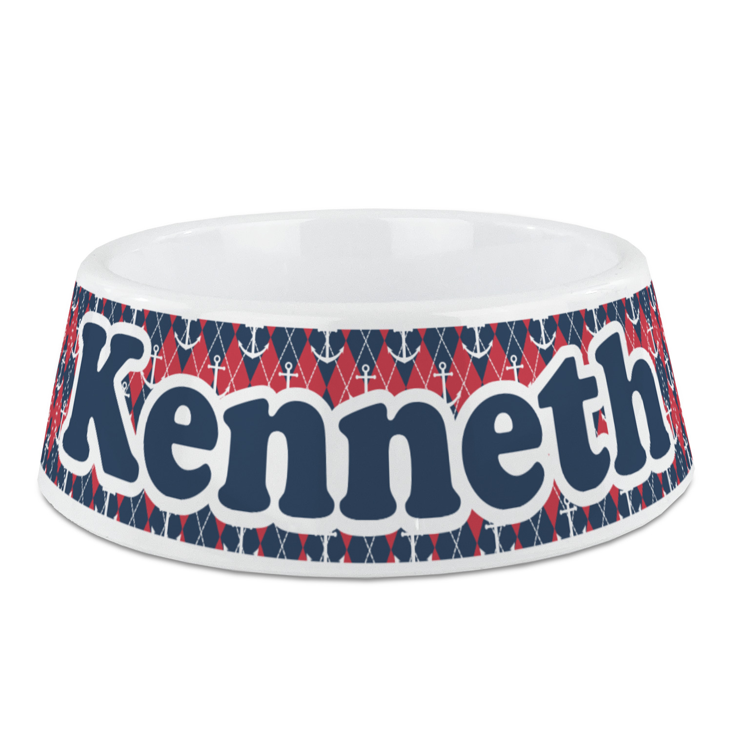 Come sail away with our Anchors & Argyle design. This design is a great balance of sea and land with nautical, red anchors on navy background and preppy red and navy argyle. Our design shown in bold navy and red, but the colors can be customized.