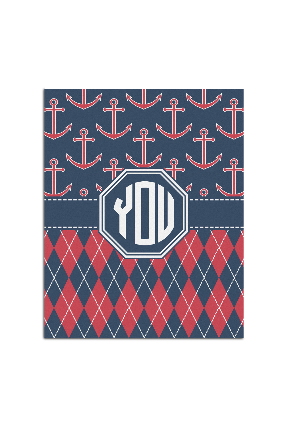 Come sail away with our Anchors & Argyle design. This design is a great balance of sea and land with nautical, red anchors on navy background and preppy red and navy argyle. Our design shown in bold navy and red, but the colors can be customized.