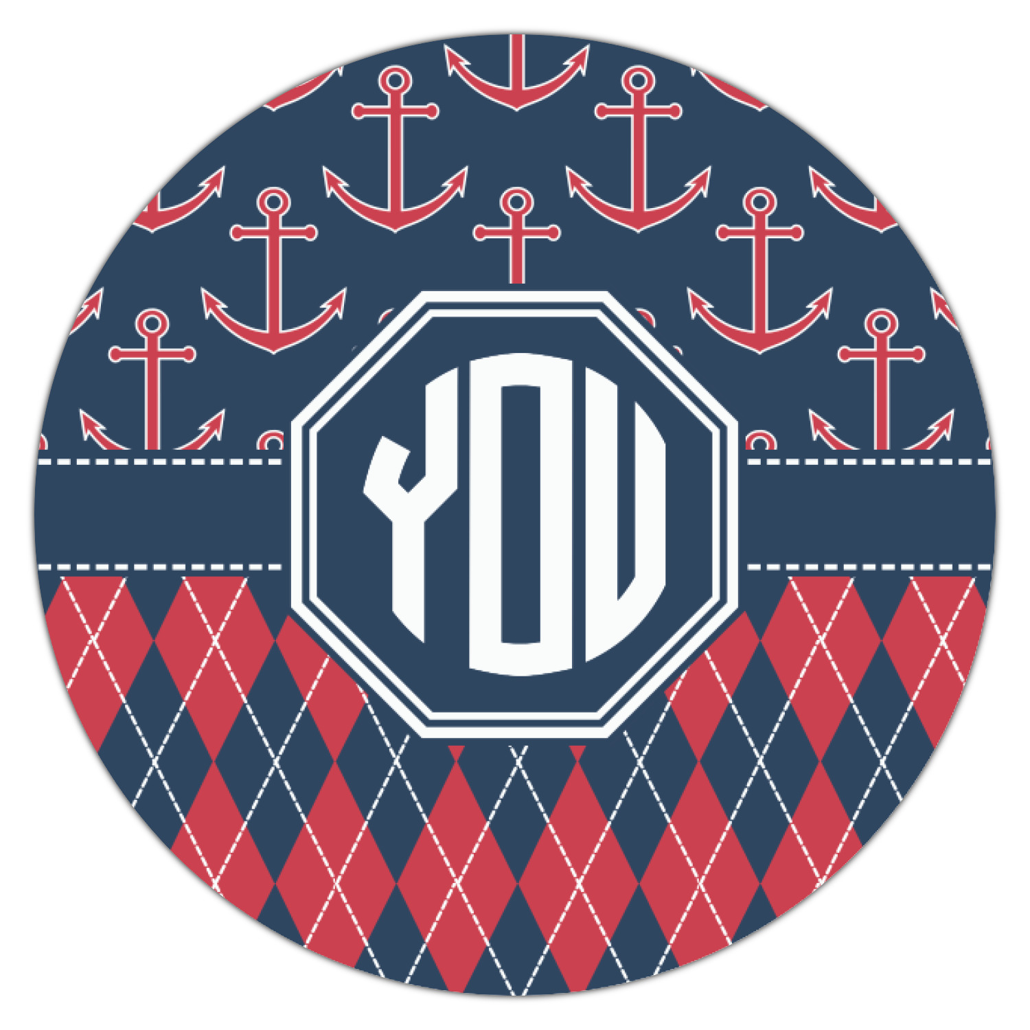 Come sail away with our Anchors & Argyle design. This design is a great balance of sea and land with nautical, red anchors on navy background and preppy red and navy argyle. Our design shown in bold navy and red, but the colors can be customized.