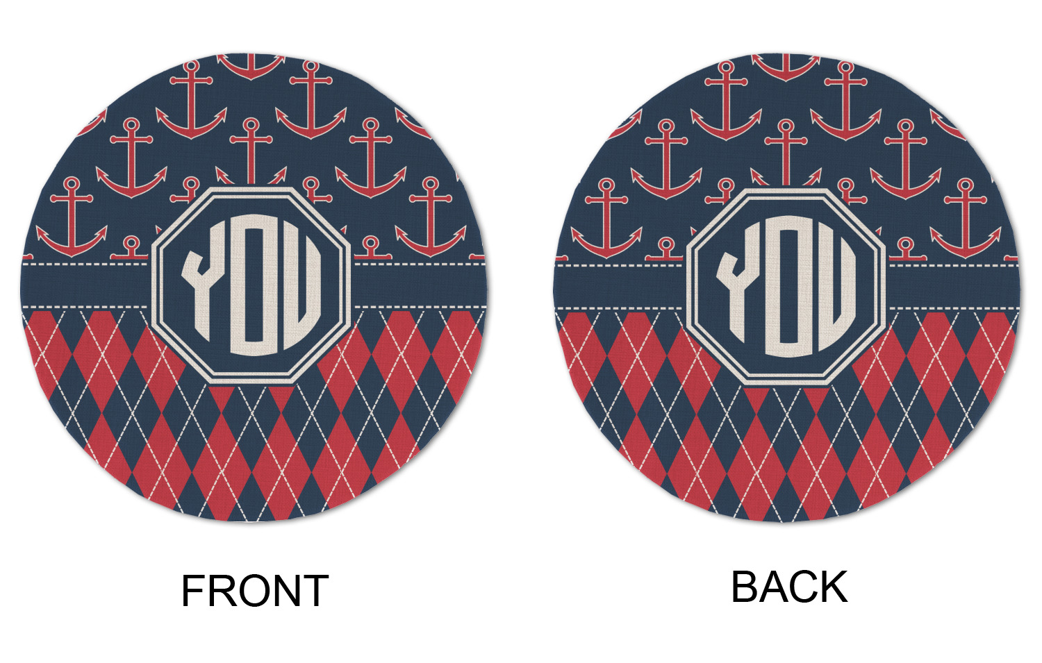 Come sail away with our Anchors & Argyle design. This design is a great balance of sea and land with nautical, red anchors on navy background and preppy red and navy argyle. Our design shown in bold navy and red, but the colors can be customized.