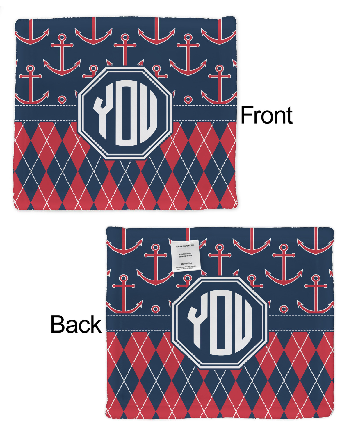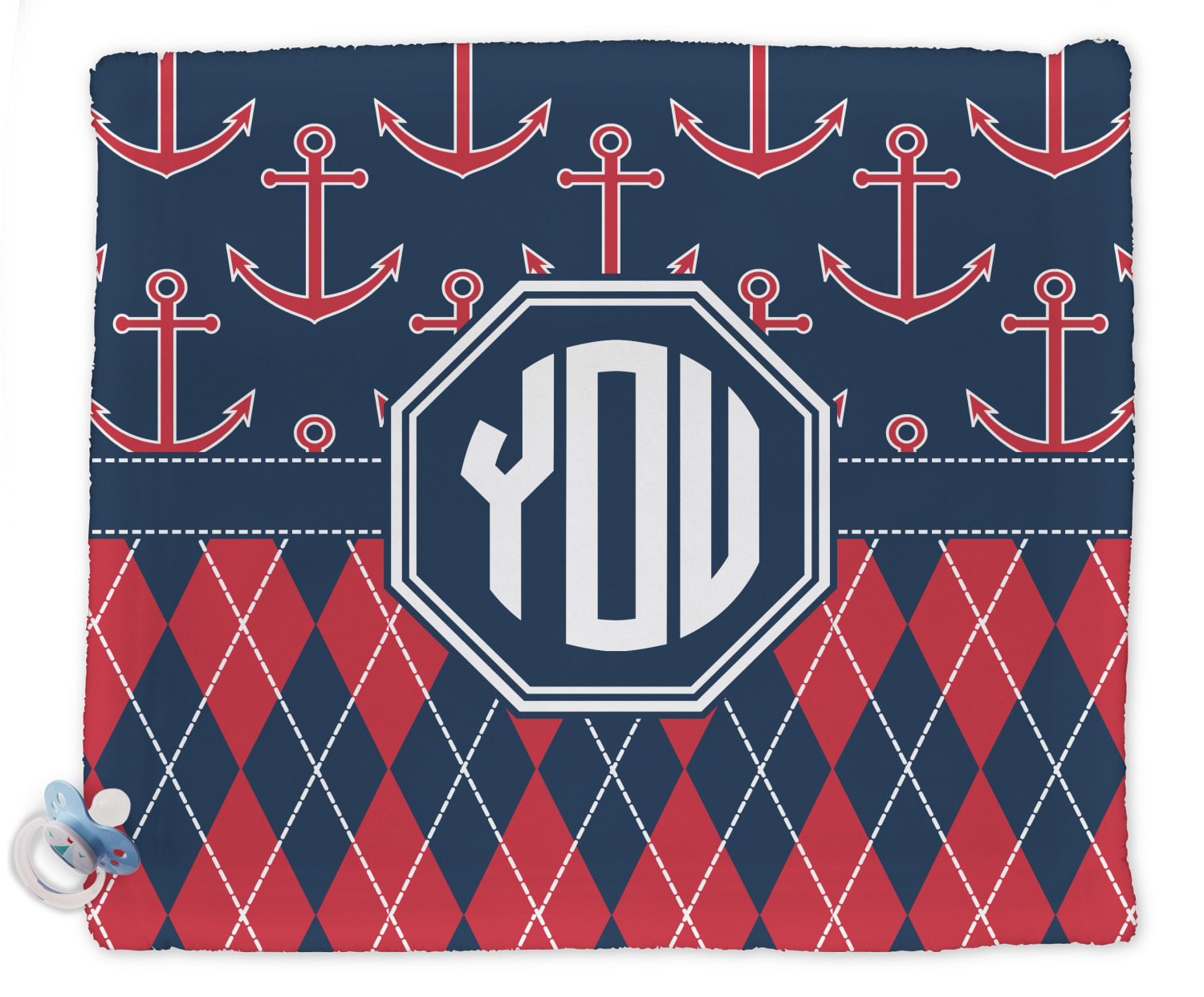 Come sail away with our Anchors & Argyle design. This design is a great balance of sea and land with nautical, red anchors on navy background and preppy red and navy argyle. Our design shown in bold navy and red, but the colors can be customized.