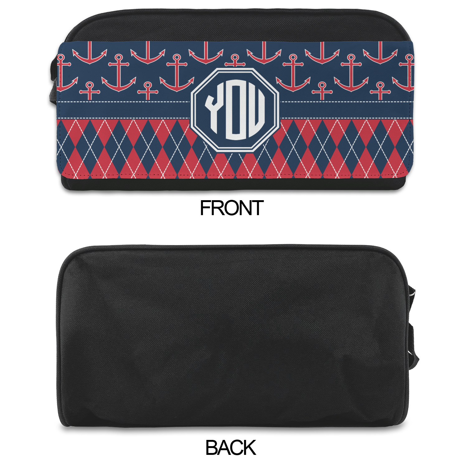 Come sail away with our Anchors & Argyle design. This design is a great balance of sea and land with nautical, red anchors on navy background and preppy red and navy argyle. Our design shown in bold navy and red, but the colors can be customized.