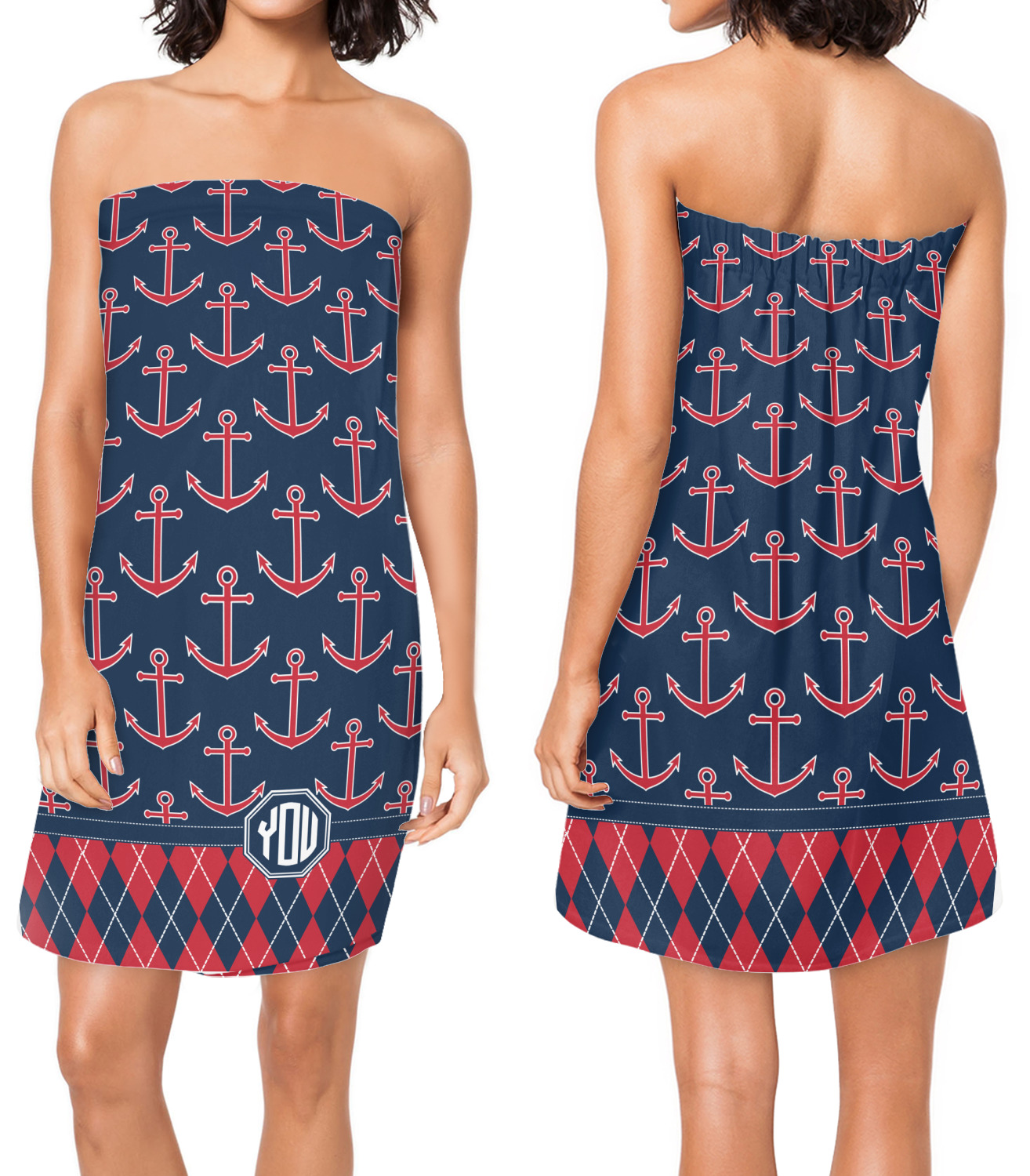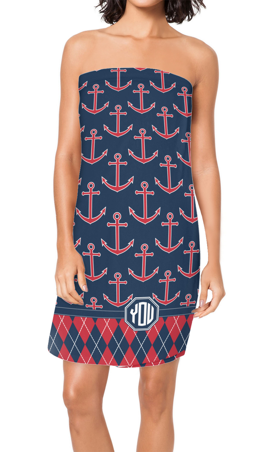 Come sail away with our Anchors & Argyle design. This design is a great balance of sea and land with nautical, red anchors on navy background and preppy red and navy argyle. Our design shown in bold navy and red, but the colors can be customized.