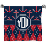 Come sail away with our Anchors & Argyle design. This design is a great balance of sea and land with nautical, red anchors on navy background and preppy red and navy argyle. Our design shown in bold navy and red, but the colors can be customized.